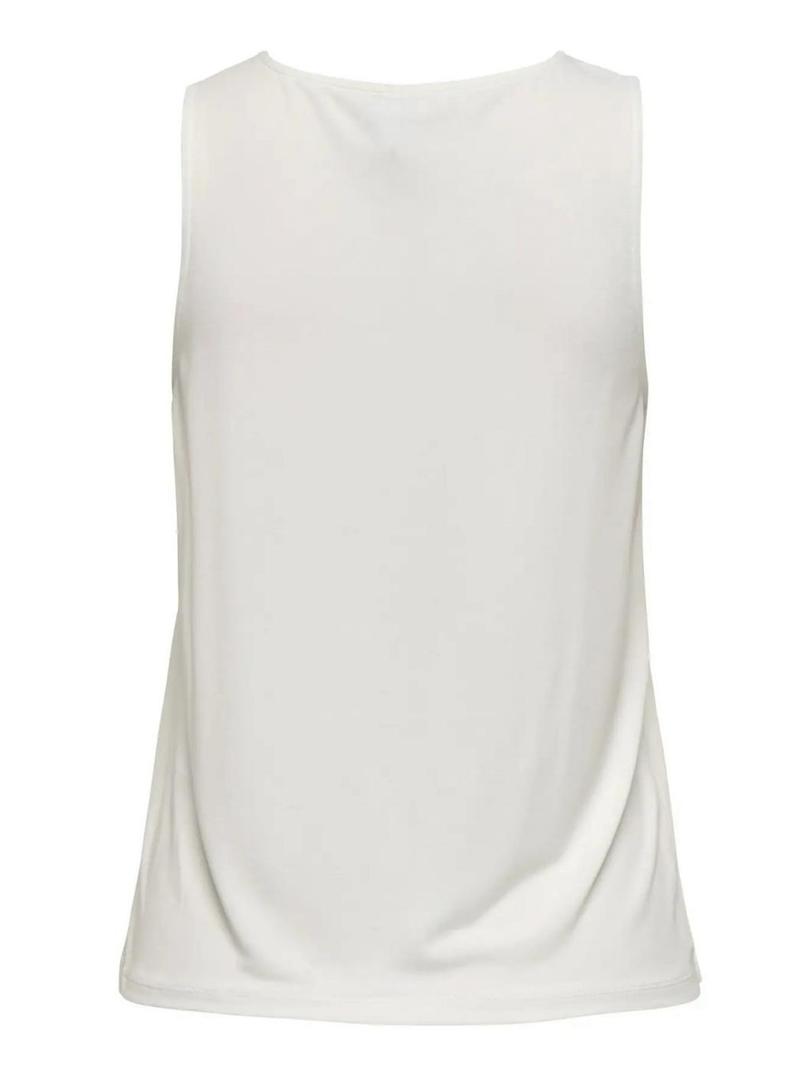 Camiseta Only. Modelo Livre. Cor branca. Gola redonda. Sem mangas. Ajuste regular. Ilustração marítima estampada na frente. Detalhes em azul.