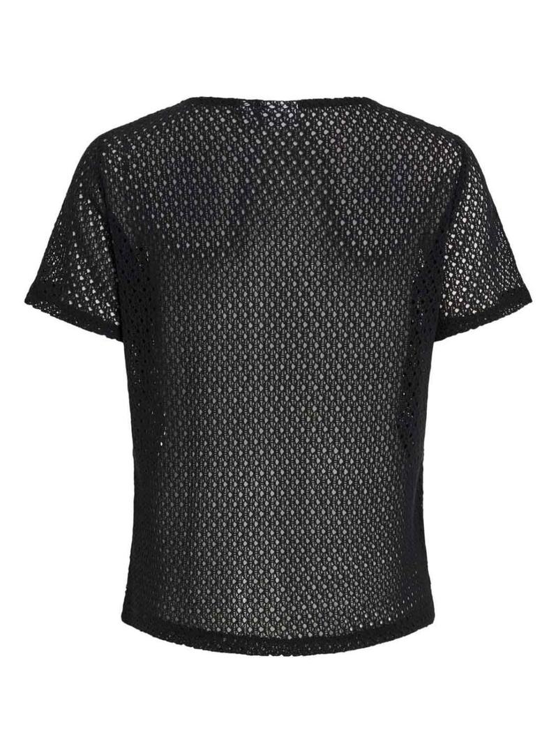 Camiseta Vila. Modelo Mine. Cor preta. Manga curta. Gola redonda. Tecido vazado. Corte regular.