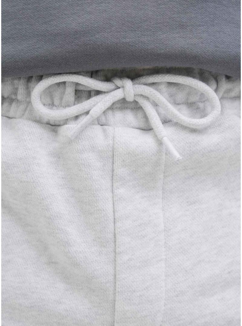Bermudas Jack and Jones. Modelo Gordon Beau. Cor cinza mesclado. Cintura elástica com cordão. Ajuste regular. Estilo jogger. Bolsos laterais. Logotipo estampado.
