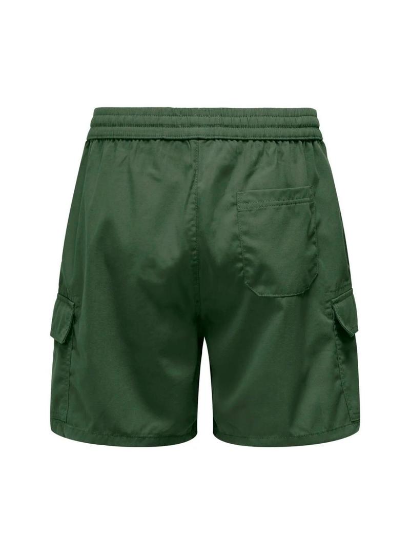 Bermudas Only and Sons. Modelo Onskal. Cor verde. Cintura elástica com cordão. Bolsos de carga. Ajuste reto. Bolsos laterais.