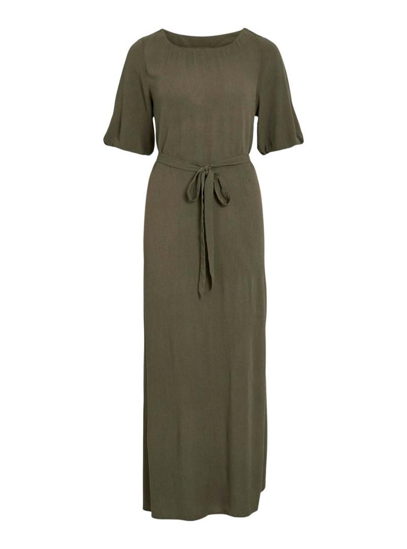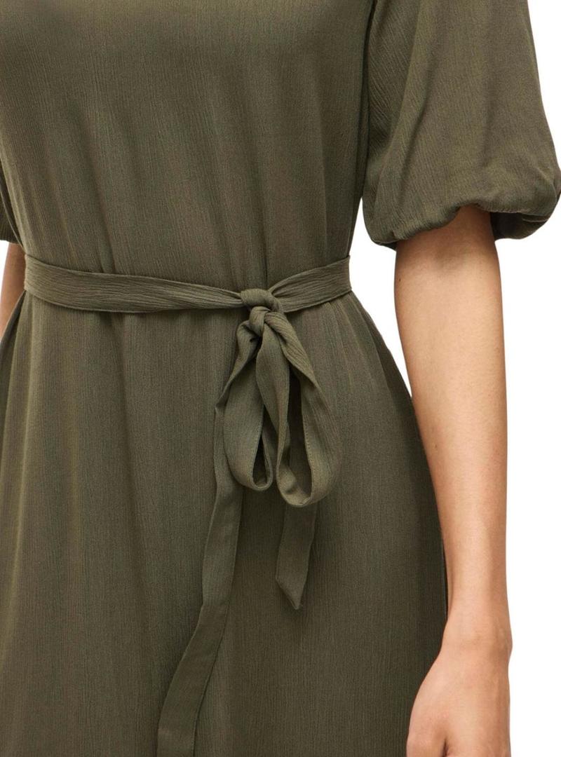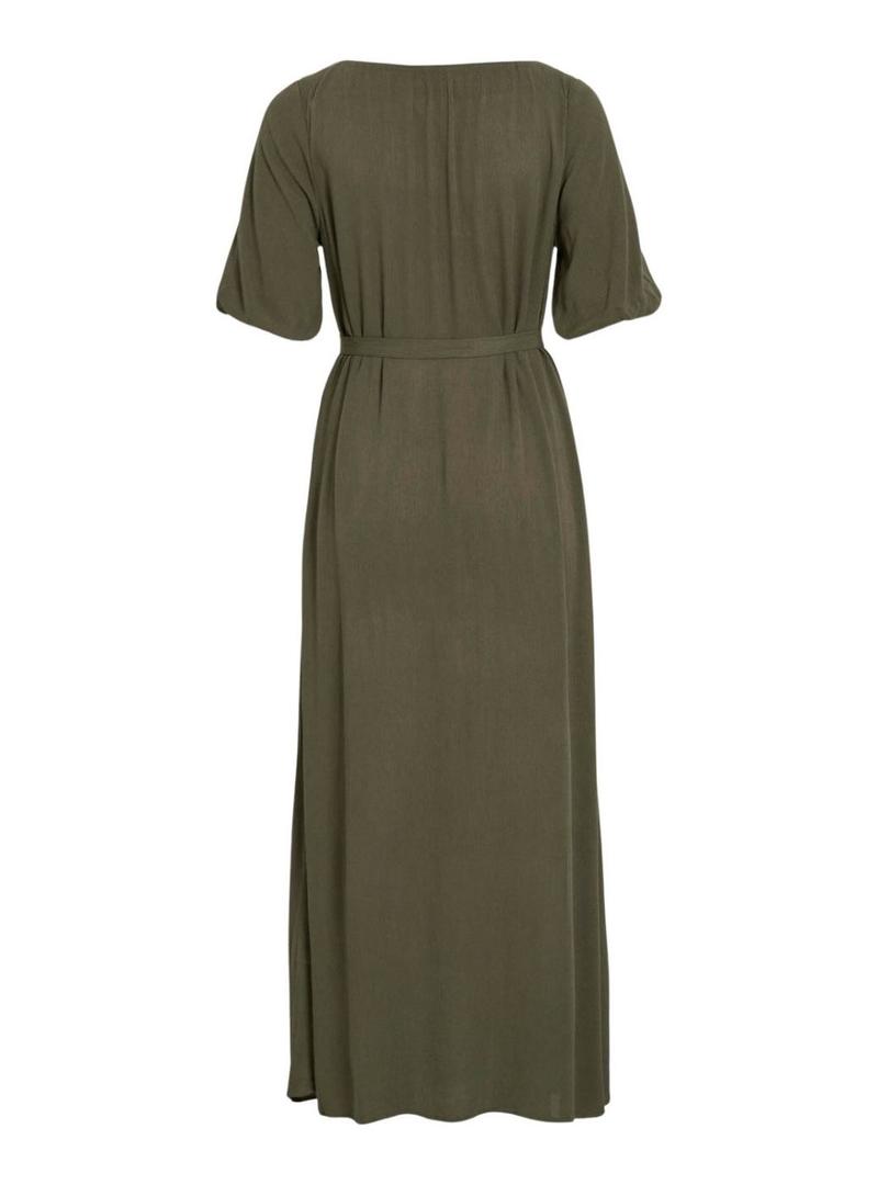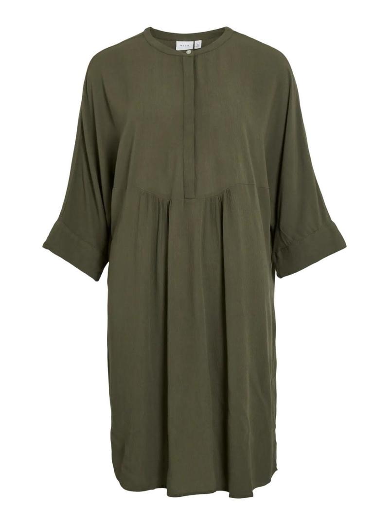 Vestido Vila. Modelo Vipaliva. Cor verde. Gola redonda. Manga 3/4. Fechamento com botões no peito. Corte mini. Ajuste folgado. Tecido leve.
