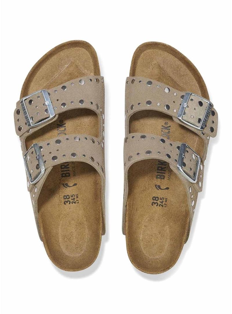 Sandálias Birkenstock Arizona Rivet bege para mulher.