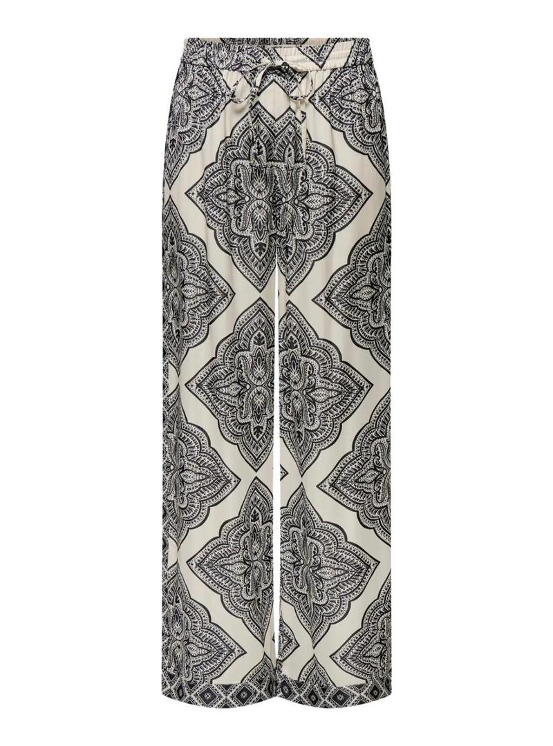 Calça étnica preta e branca Only Hairon para mulher.