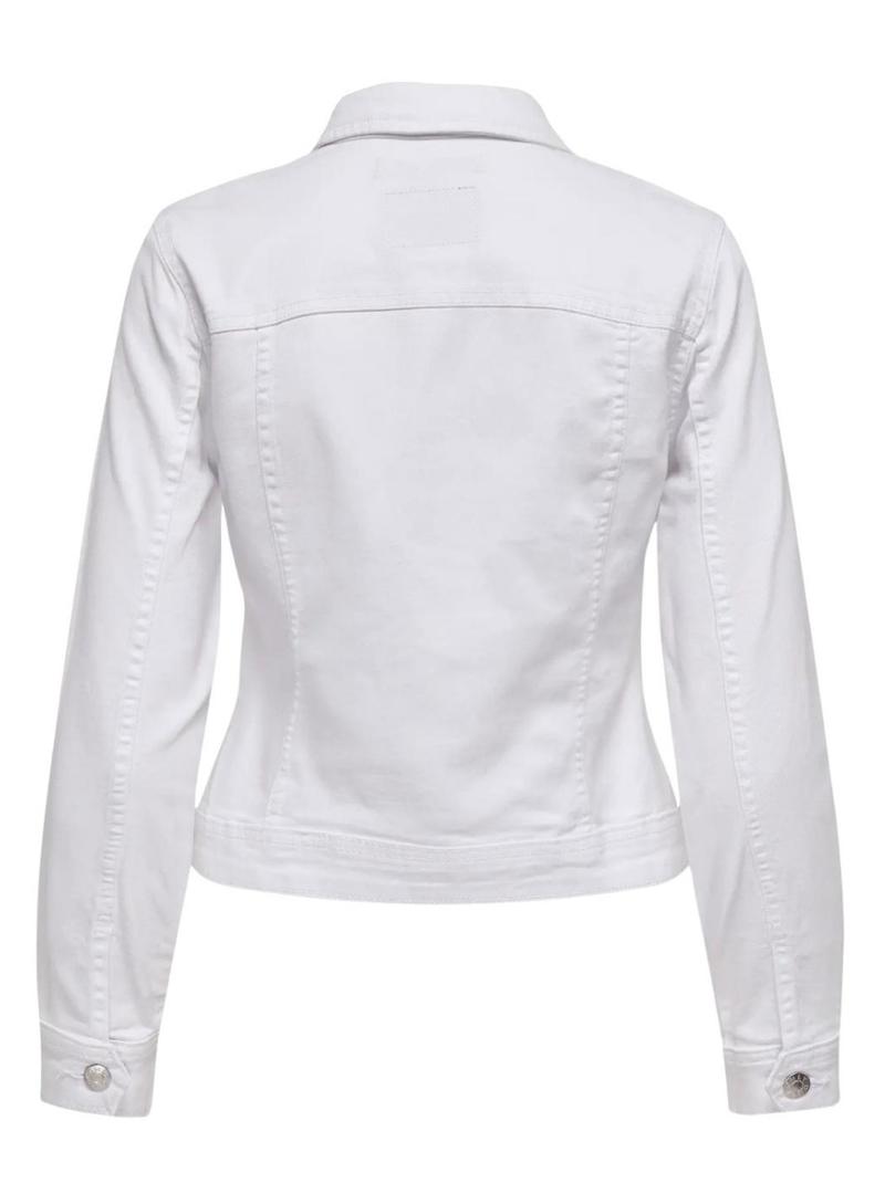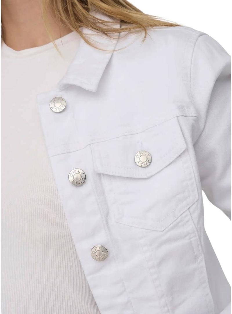Jaqueta jeans Only. Modelo Wonder. Cor branca. Fechamento com botões metálicos. Bolsos aplicados com aba no peito. Bolsos laterais. Corte ajustado. Tecido elástico.