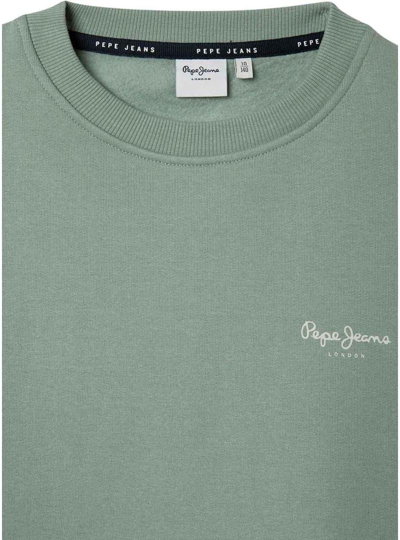 Moletom Pepe Jeans. Modelo Luke. Cor verde. Gola redonda. Ajuste regular. Logo estampado no peito. Mensagem Stay Tuned estampada nas costas. Extremidades caneladas.