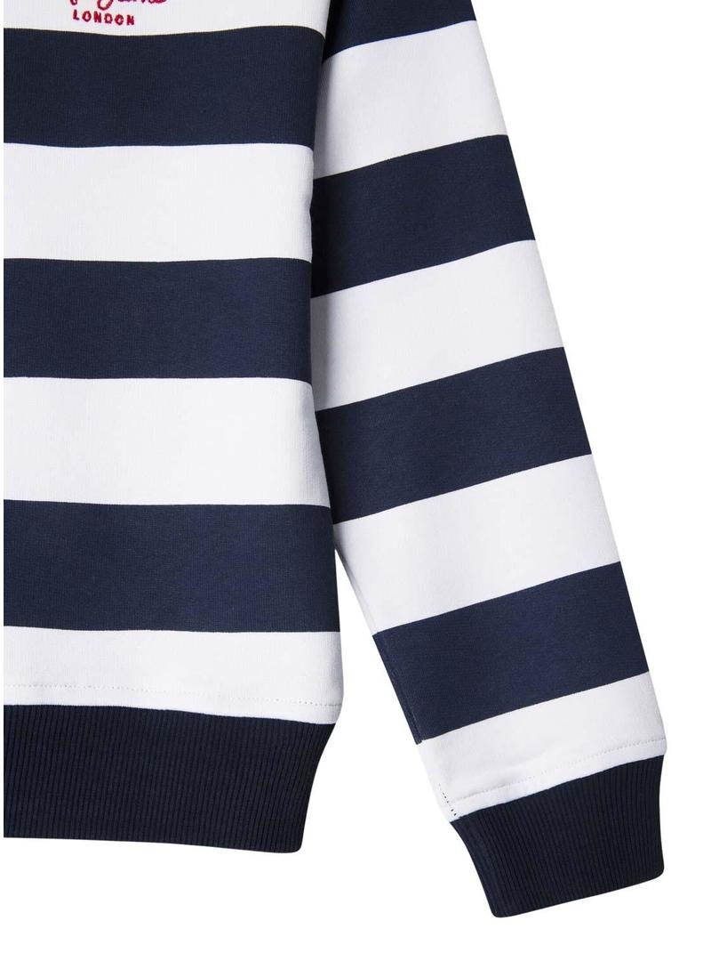 Moletom Pepe Jeans. Modelo Vania. Cor azul marinho e branco. Estampado com listras horizontais. Gola redonda. Punhos canelados. Ajuste regular. Logo no peito.