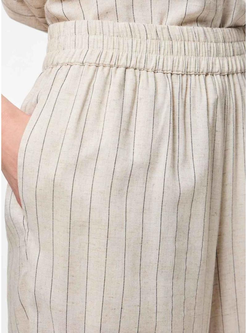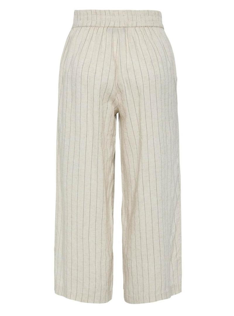 Calça culotte Pieces Pia listrada bege para mulher.