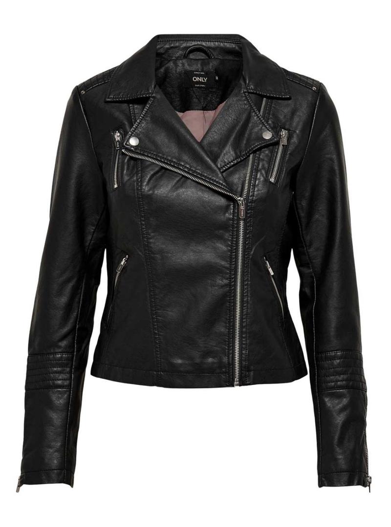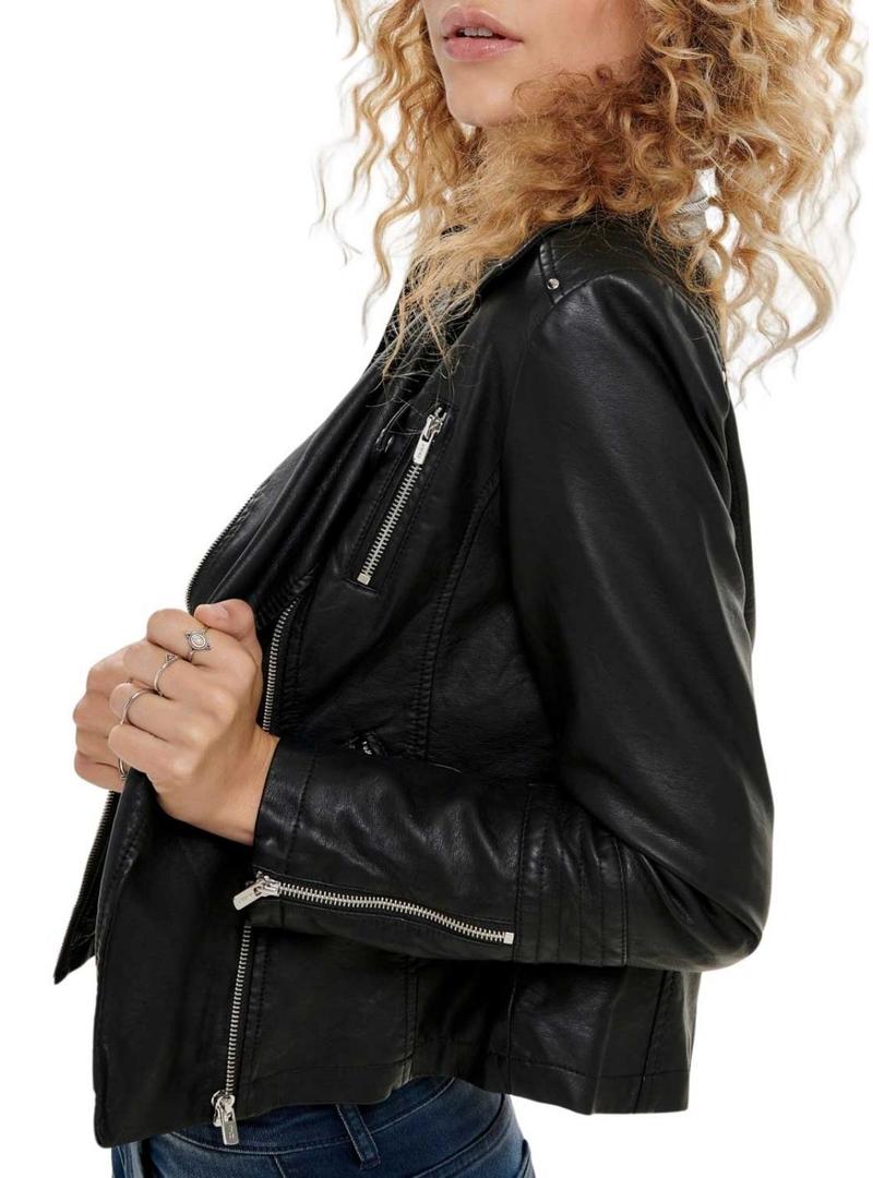 Jaqueta de couro sintético preto Only Gemma para mulher