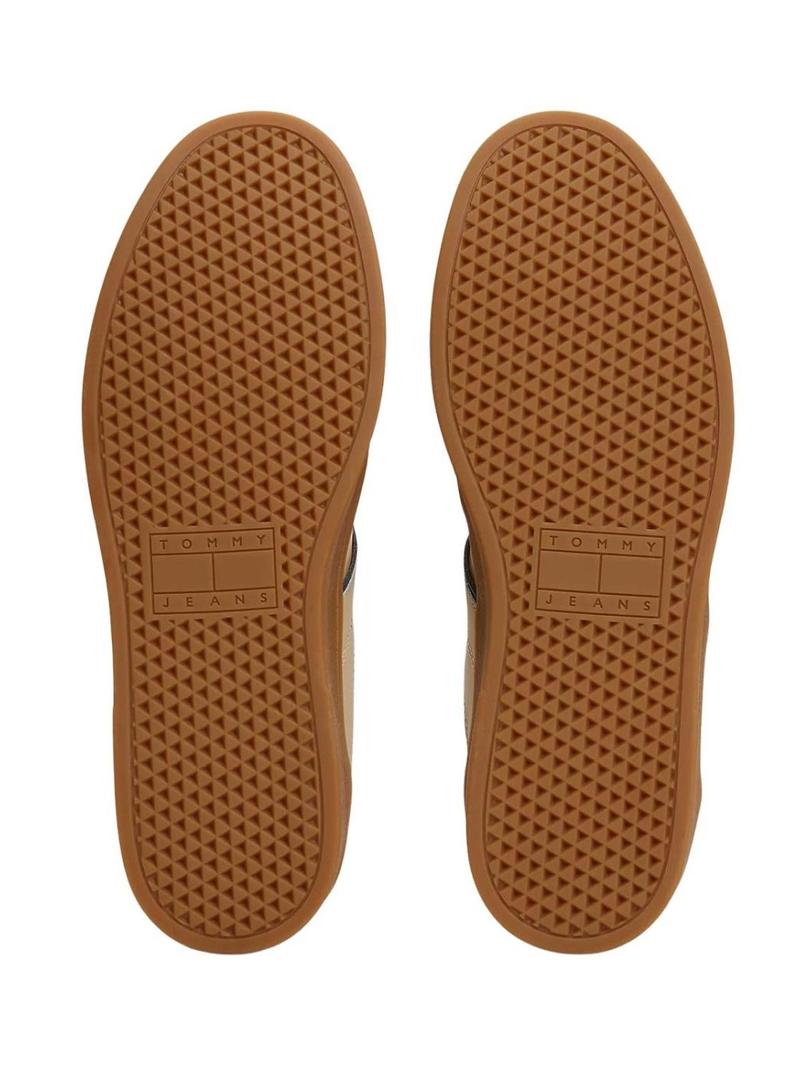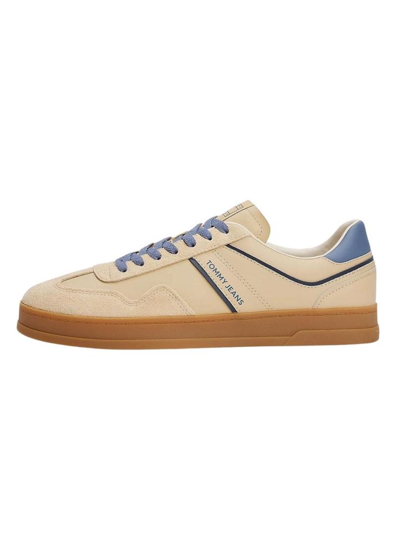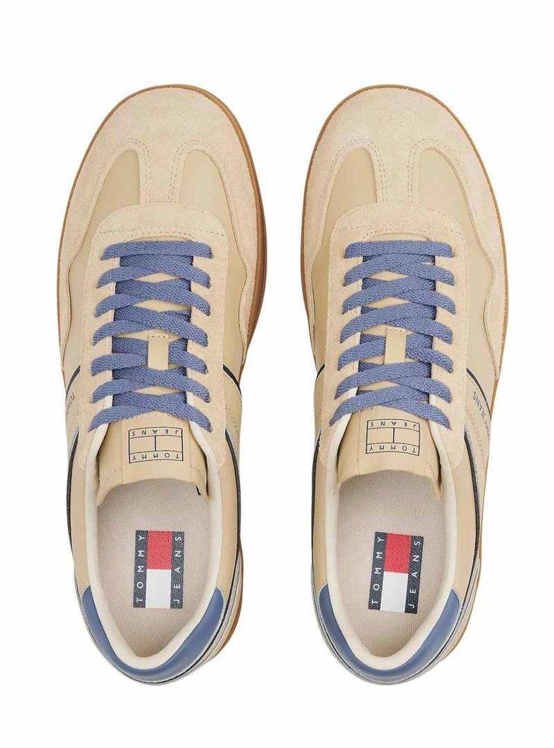 Chuteiras Tommy Jeans. Modelo The Greenwich. Cor amarelo. Encerramento com cordões. Sola de borracha em cor natural. Detalhes em azul. Tons pastel. Logotipo lateral.