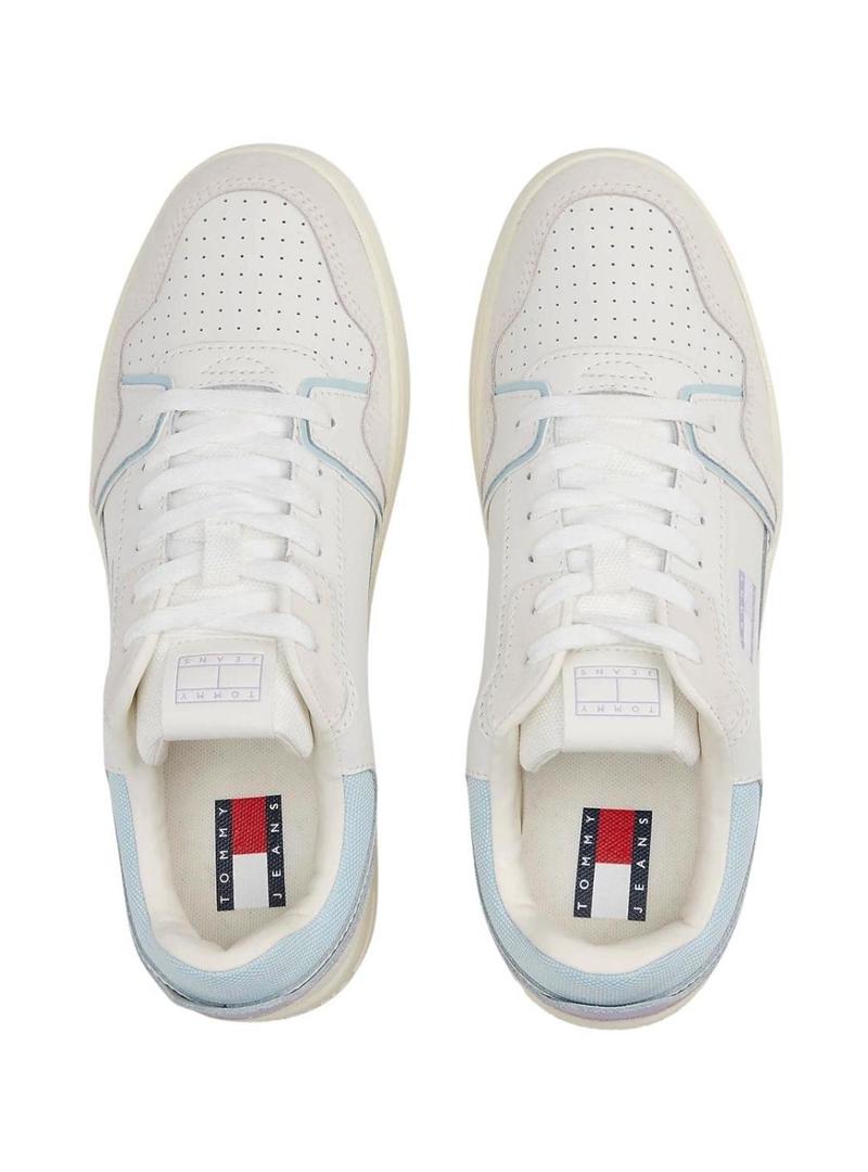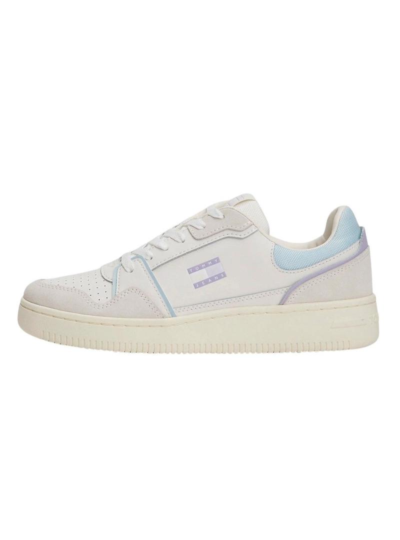 Sapatilhas Tommy Jeans Retro Basket branco e lilás para mulher.