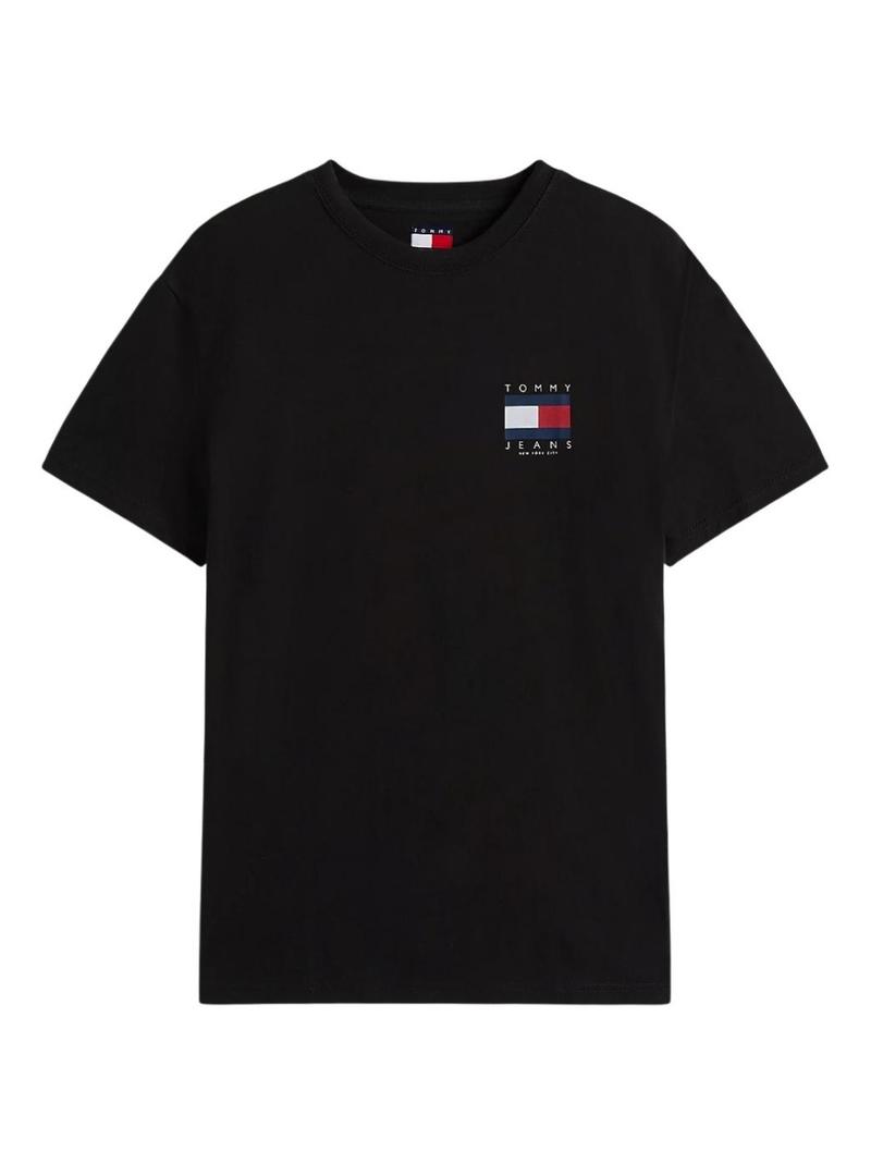 Camiseta Tommy Jeans. Modelo Bandeira. Cor preta. Gola redonda. Manga curta. Ajuste regular. Logotipo estampado no peito e nas costas.