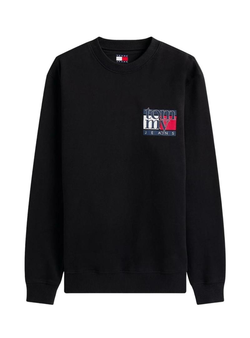 Moletom Tommy Jeans. Modelo Bandeira. Gola redonda. Manga comprida. Cor preta. Extremidades caneladas. Ajuste regular. Logotipo estampado no peito com marca.