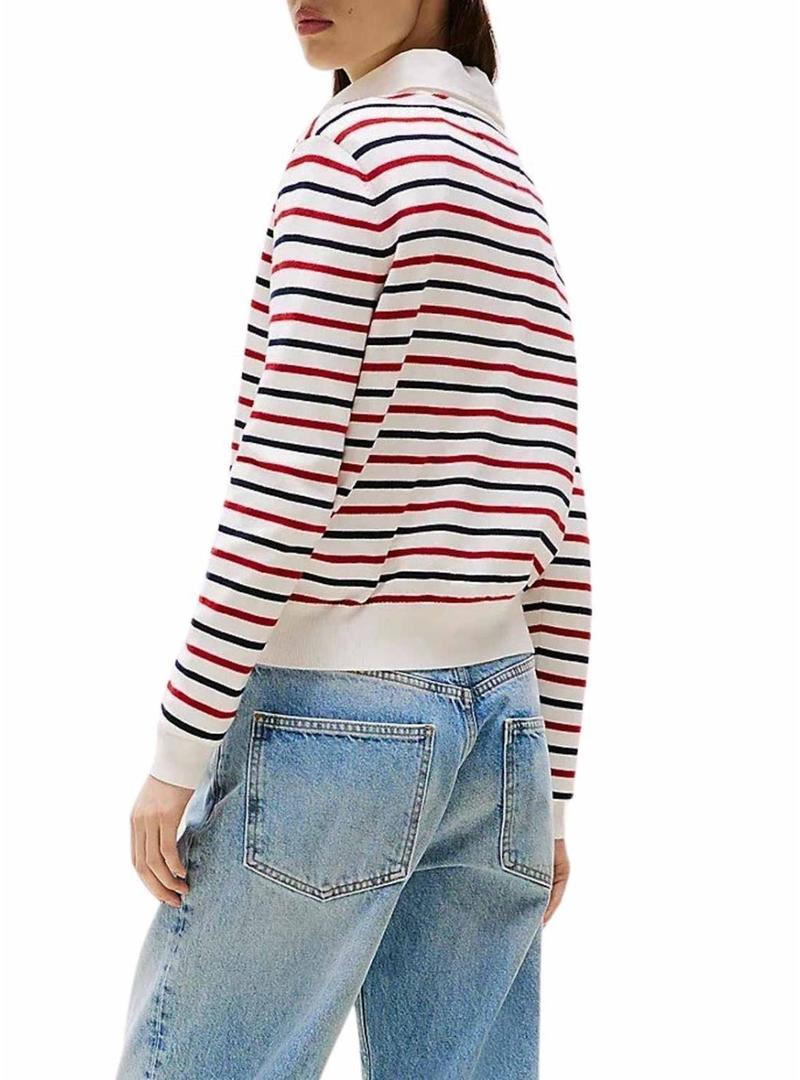 Camisola Tommy Jeans listrada em branco e azul Varsity para mulher.
