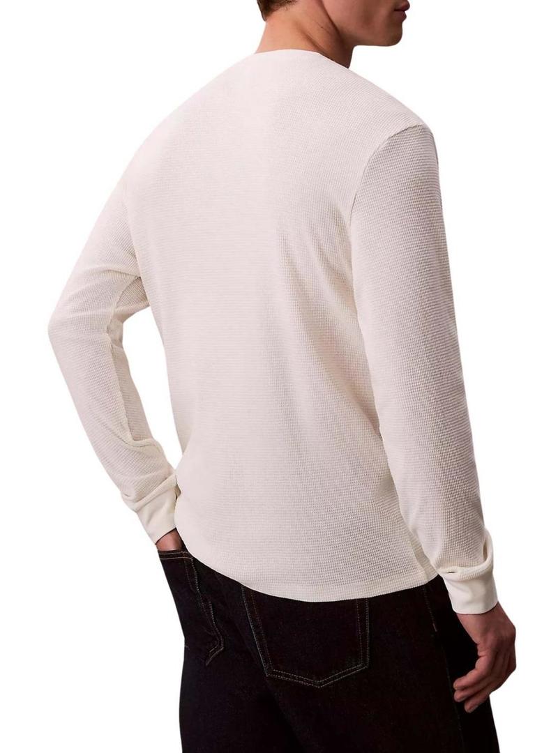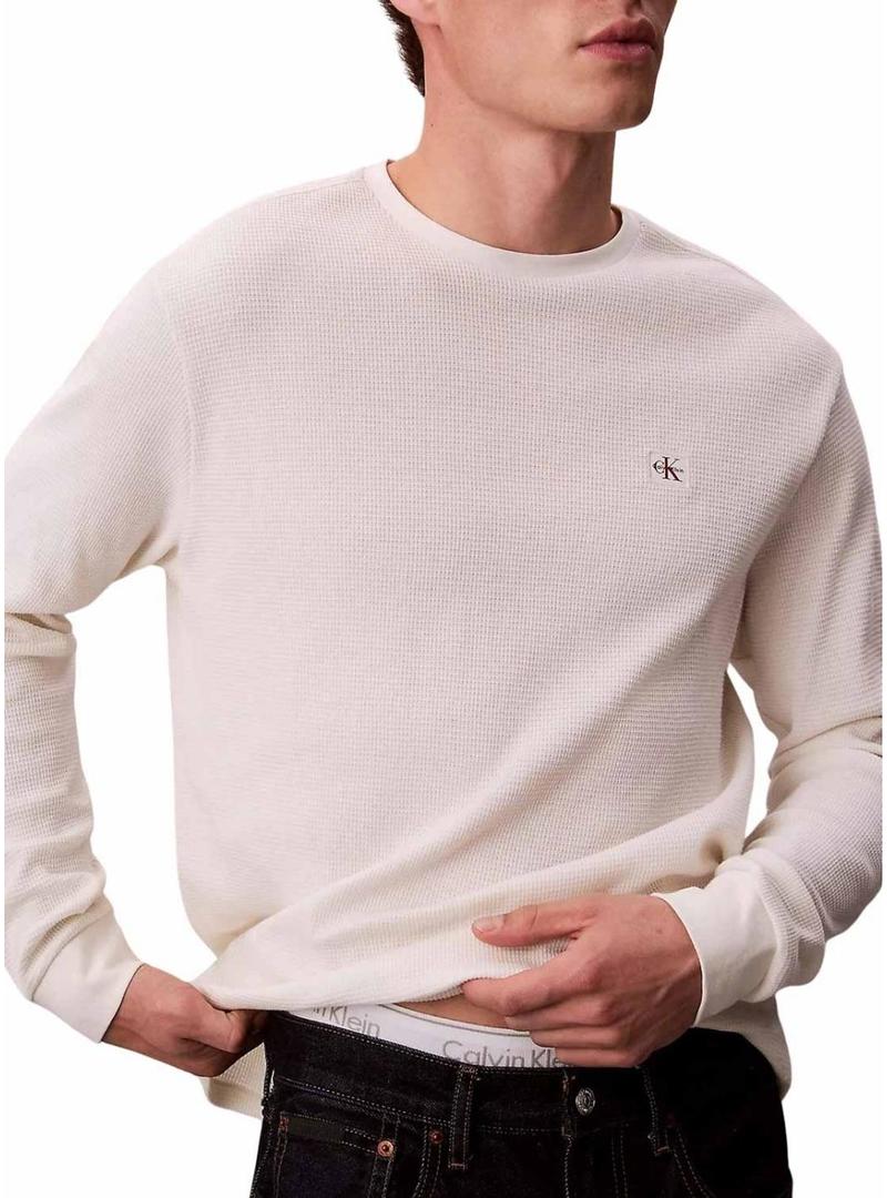 Camiseta Calvin Klein Jeans Waffle Badge branca para homem.