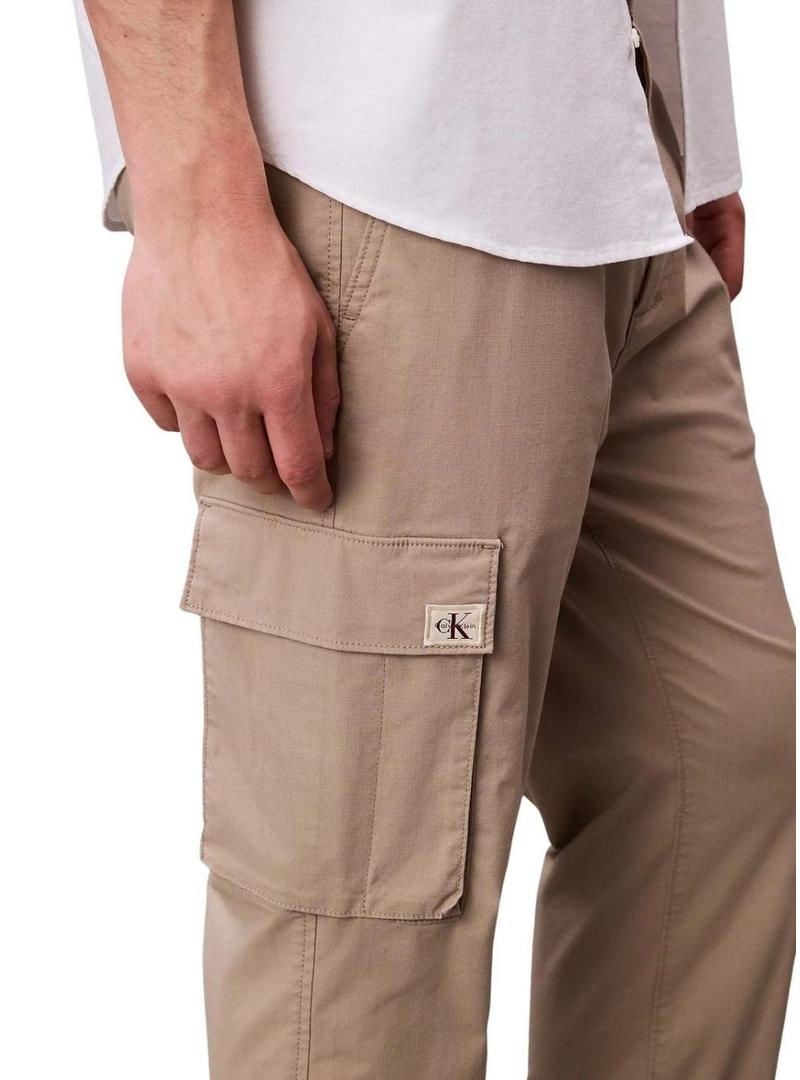 Calças cargo Calvin Klein Jeans ripstop cáqui para homens.