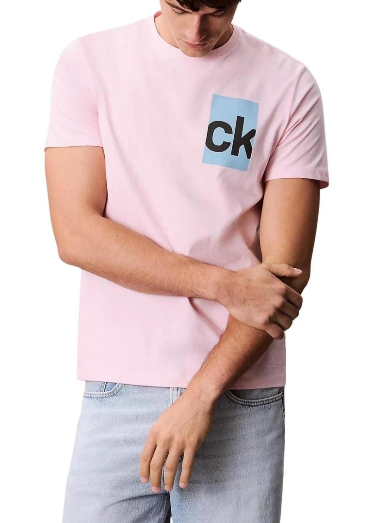 Camiseta Calvin Klein Jeans Box rosa para homem.
