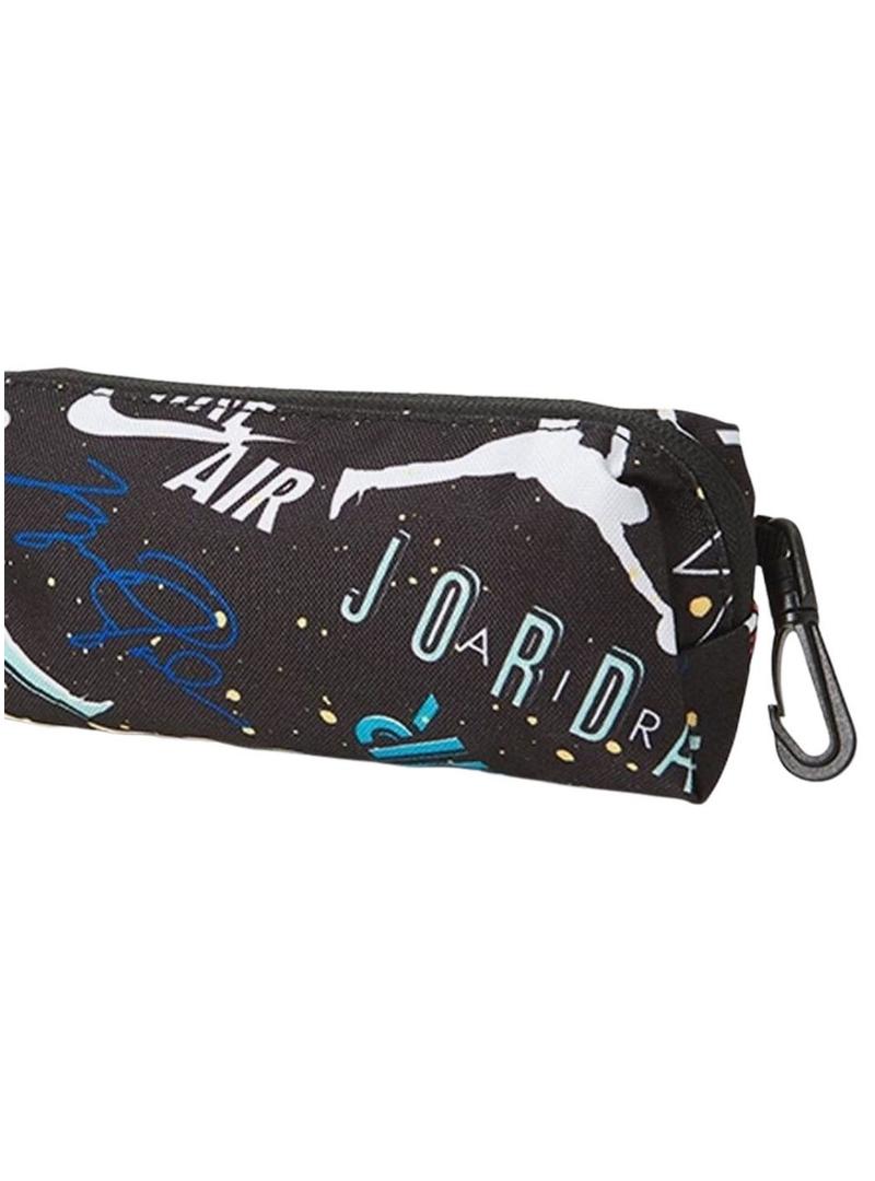 Mochila Air Jordan. Cor preta com gráficos coloridos. Alças acolchoadas. Múltiplos compartimentos. Fecho de zíper. Compartimento principal. Bolso frontal. Estampado: Air Jordan. Zíper bidirecional. Dimensões: 45x30x10 cm. Inclui estojo com zíper. Compartimento lateral para líquidos.