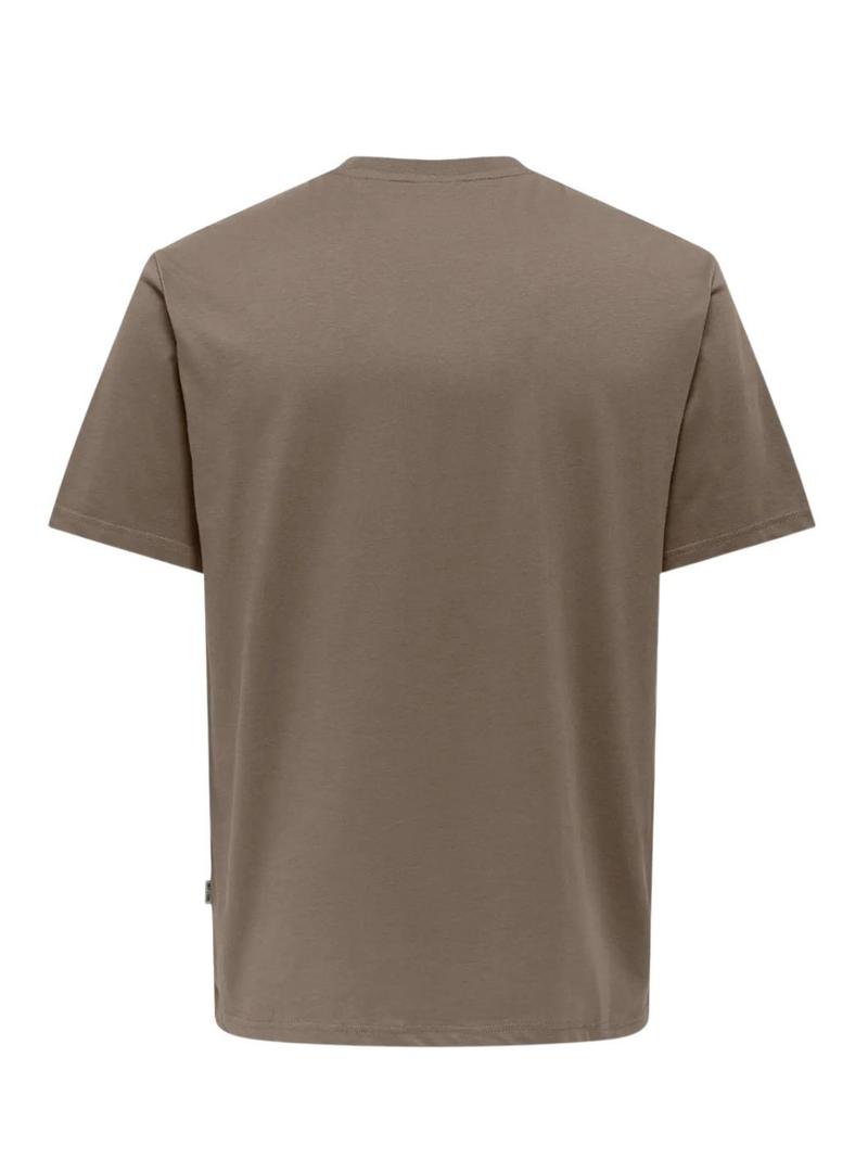 Camiseta Only and Sons. Modelo Dawson. Cor marrom. Gola redonda. Manga curta. Ajuste regular. Tecido macio. Patch da marca bordado no peito.