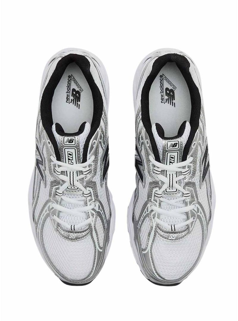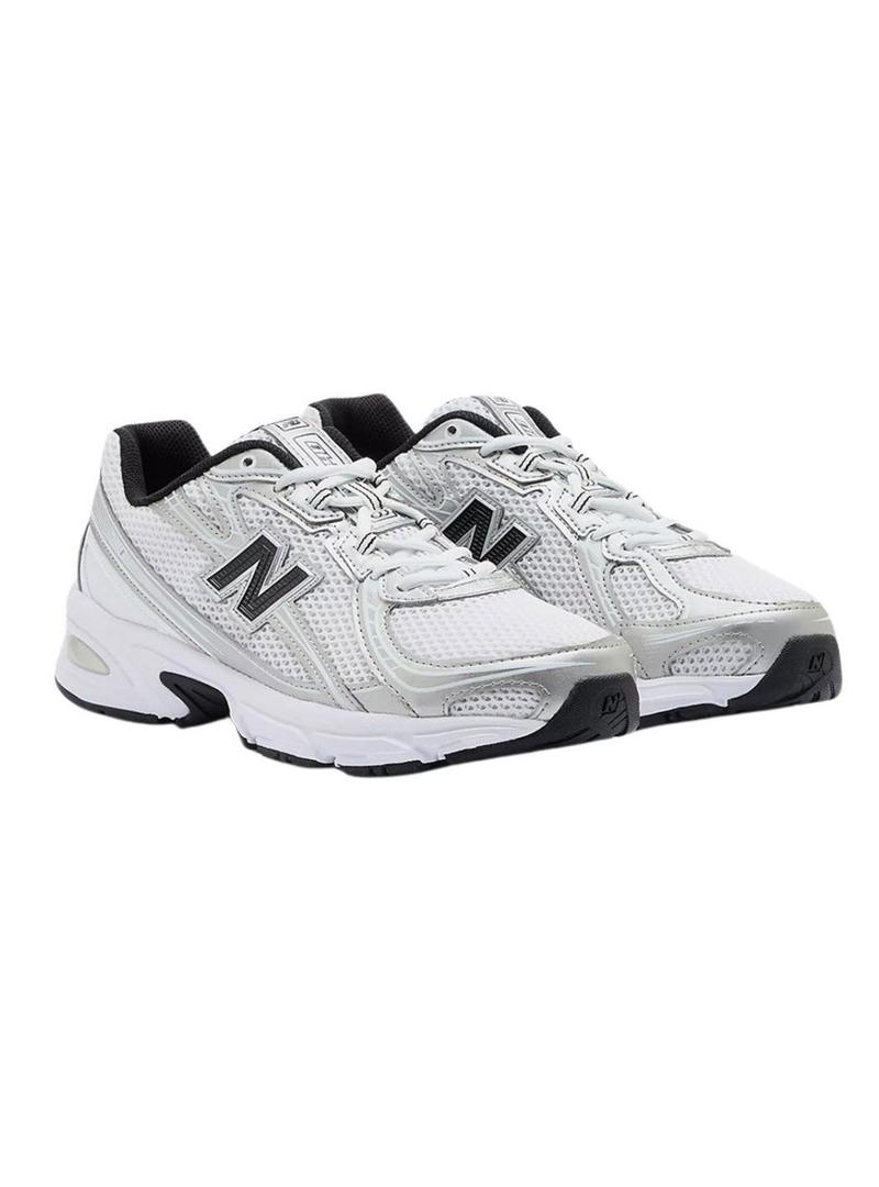 Sapatilhas New Balance. Modelo U740. Cor branca. Detalhes em prata e preto. Fecho com atacadores. Logotipo lateral. Palmilha removível. Respirável. Forro resistente ao frio. Painéis de malha. Estilo retro.