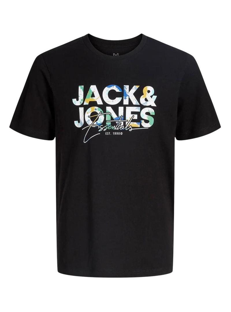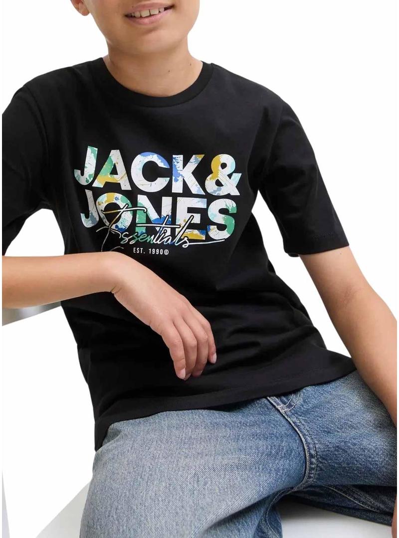 Camiseta Jack and Jones Geplas preta para crianças.