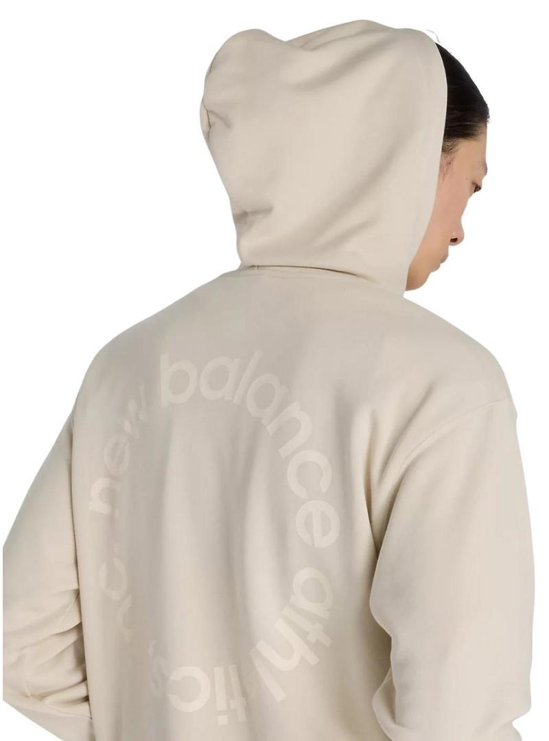 Moletom New Balance. Modelo Circular Logo. Cor bege. Com capuz. Bolso canguru. Manga comprida. Extremidades caneladas. Logotipo circular estampado no peito e nas costas em tom.