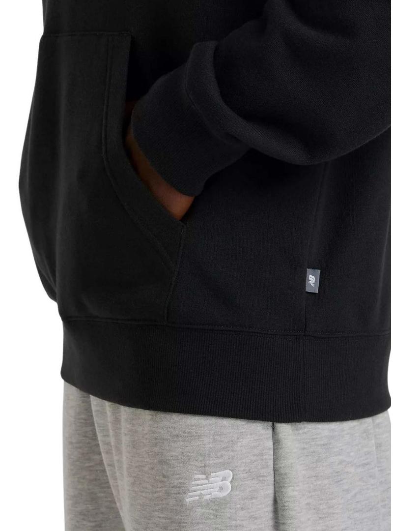 Moletom New Balance. Modelo Circular Logo. Cor preta. Com capuz. Bolso canguru. Manga comprida. Extremidades caneladas. Logo circular estampado no peito e nas costas em contraste.