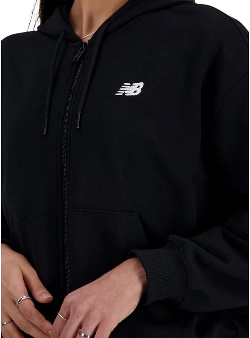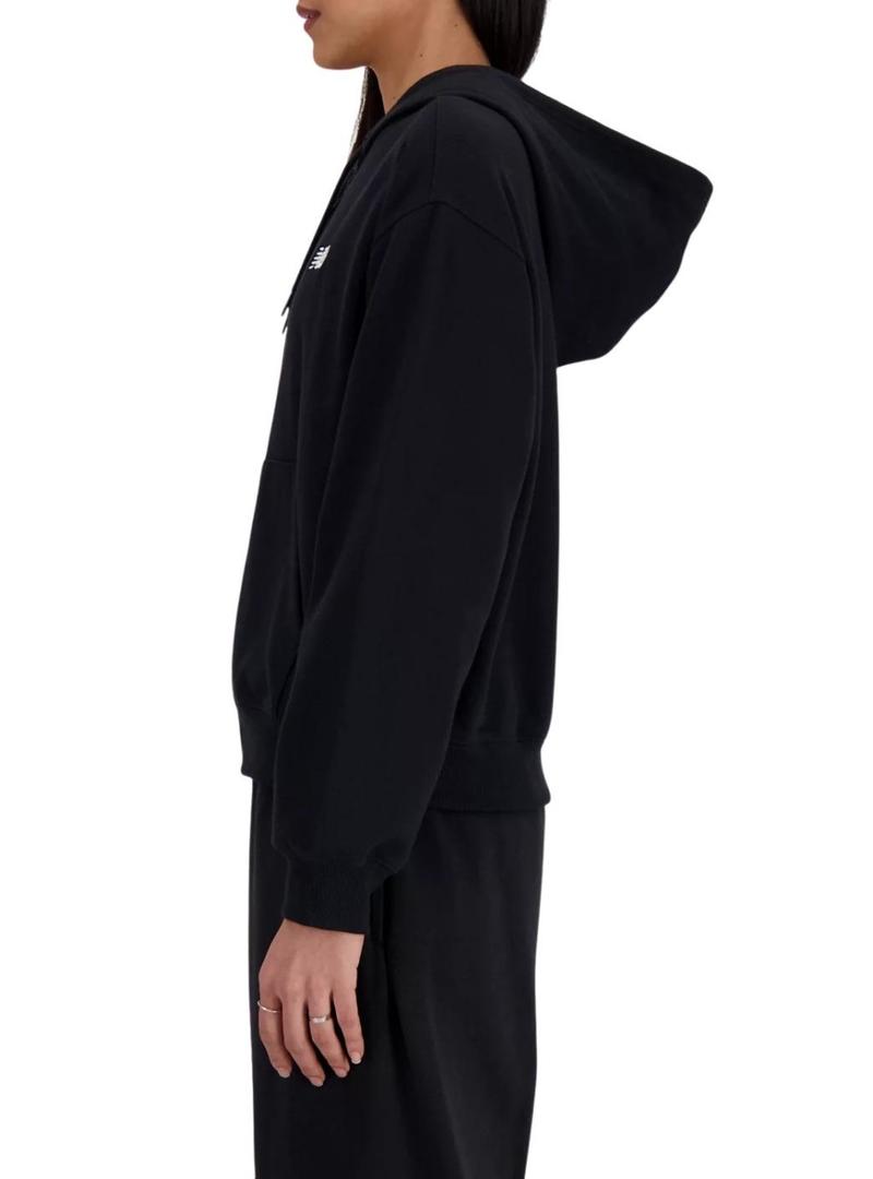 Jaqueta de treino New Balance. Modelo Zip. Cor preta. Fecho com zíper. Logotipo bordado no peito em linha branca. Bolsos laterais. Ajuste folgado. Corte quadrado. Extremidades caneladas. Capuz com cordão ajustável.