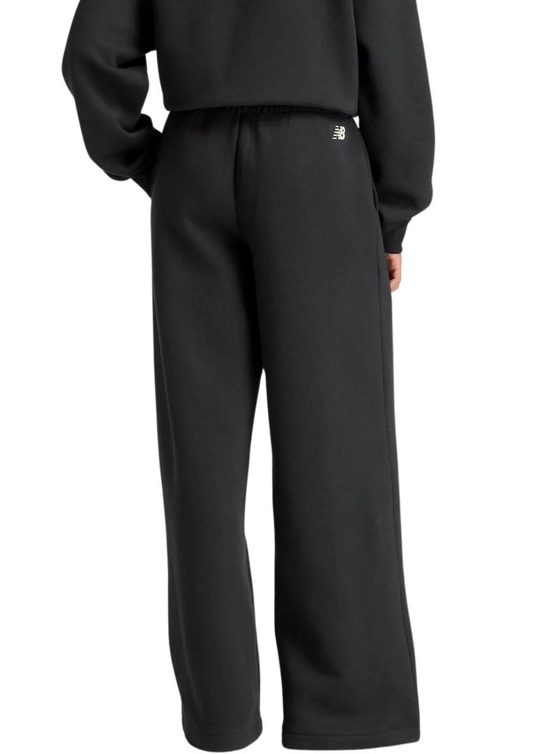Calça New Balance. Modelo Reimagined. Cor preta. Cintura elástica com cordão ajustável. Bolsos laterais. Marca estampada no quadril. Perna com estilo wide leg. Levemente boca de sino. Tecido aveludado.