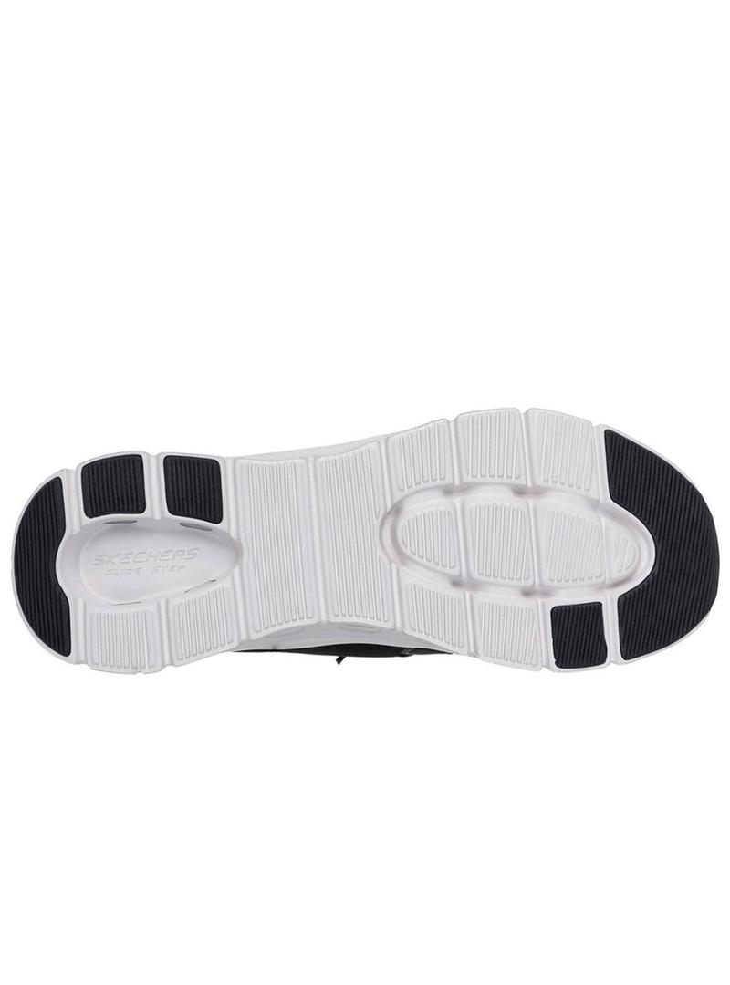 Tênis Skechers. Modelo Glide. Cor preta. Palmilha Skechers Arch Fit com suporte no arco plantar certificado por podólogos. Palmilha removível. Parte superior em malha técnica. Fecho com cadarços elásticos. Sola flexível com tração. Salto de 4,4 cm. Detalhes em preto.