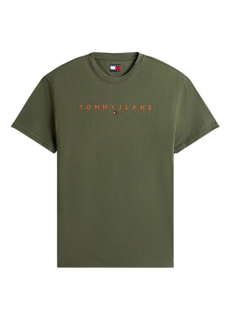 Camiseta Tommy Jeans Linear Logo verde para homem.