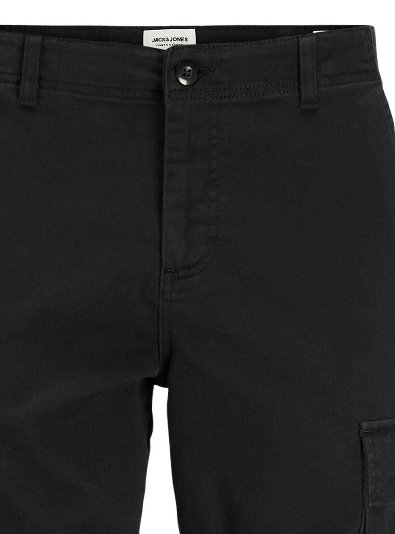 Calça cargo Jack and Jones. Cor preta. Cintura média. Fechamento com botão e zíper. Bolsos laterais com aba. Corte relaxado. Bolsos dianteiros e traseiros.