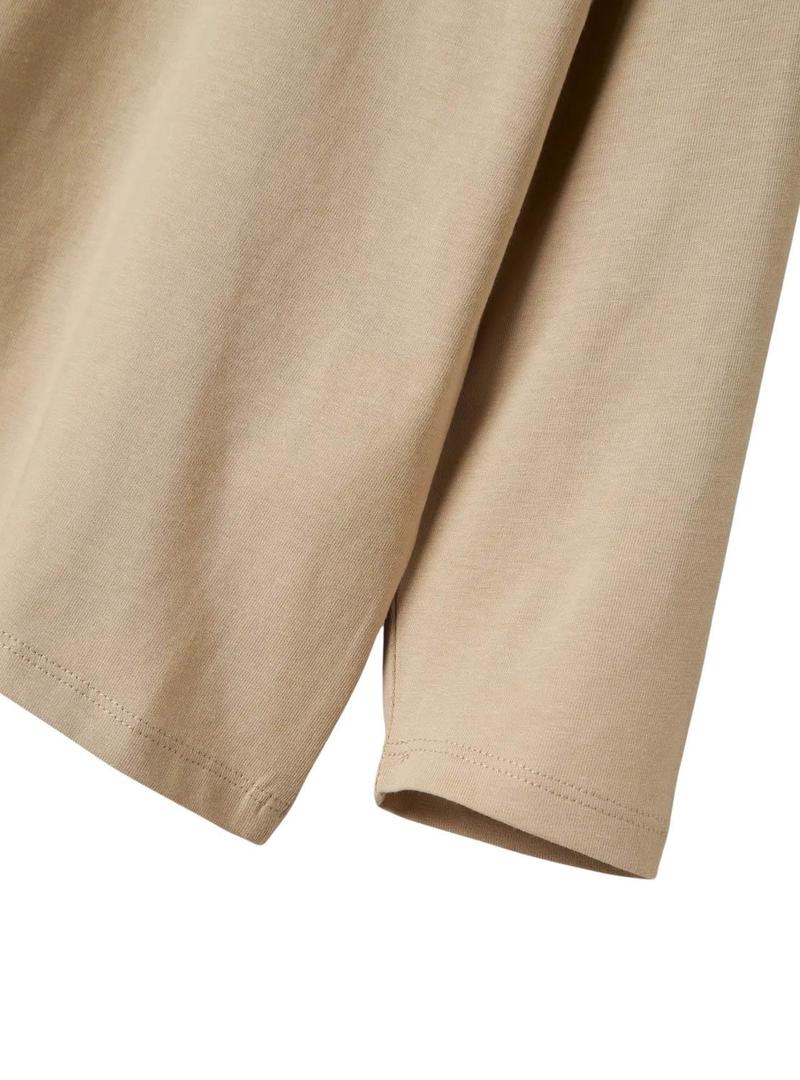 Camiseta Name It. Cor tostada. Gola redonda. Manga comprida. Corte regular. Estampa pigmentada de dinossauros na parte da frente e de trás.