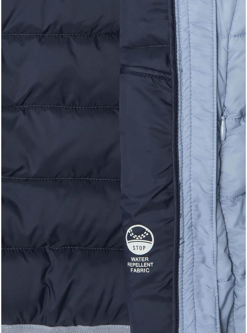 Jaqueta Pepe Jeans. Cor azul. Painéis acolchoados horizontais. Tecido impermeável. Com capuz fixo. Fecho frontal com zíper. Bolsos frontais com zíper. Logo Pepe Jeans no peito. Acabamentos com elástico. Forro interior em contraste.