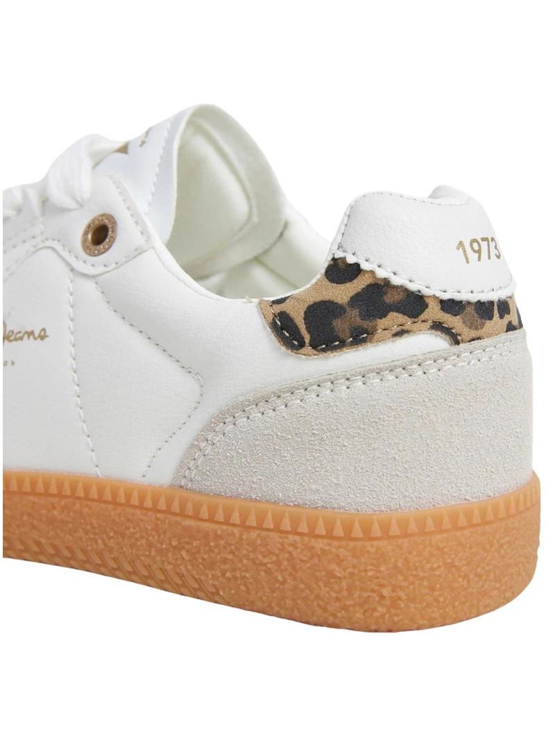 Sapatilhas Pepe Jeans. Cor branca. Parte superior em pele sintética. Estilo retro. Fecho com cordões. Logo termosselado nos laterais. Linhas metalizadas nos laterais. Calcanhar com detalhes animal print e logo 1973 estampado. Sola cupsole de borracha.