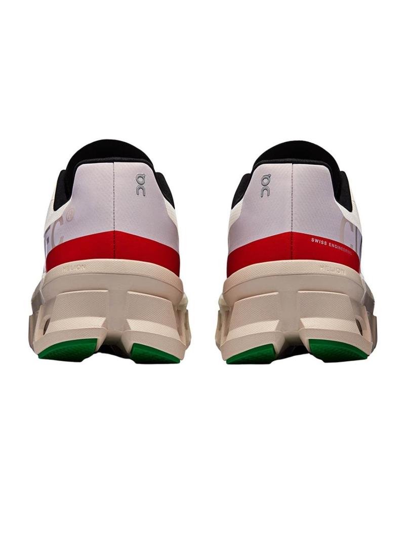 Sapatilhas On Running. Modelo Cloudmonster. Cor de fundo branco. Detalhes multicoloridos. Logotipo lateral em preto. Sapatilhas com amortecimento máximo. Palmilha e parte superior suaves para maior conforto. Ágil Speedboard. Superespuma Helion que absorve os impactos. Leves e duráveis. Peso: 230g. Tamanho regular. Palmilha CloudMonster. Sola CloudTec.