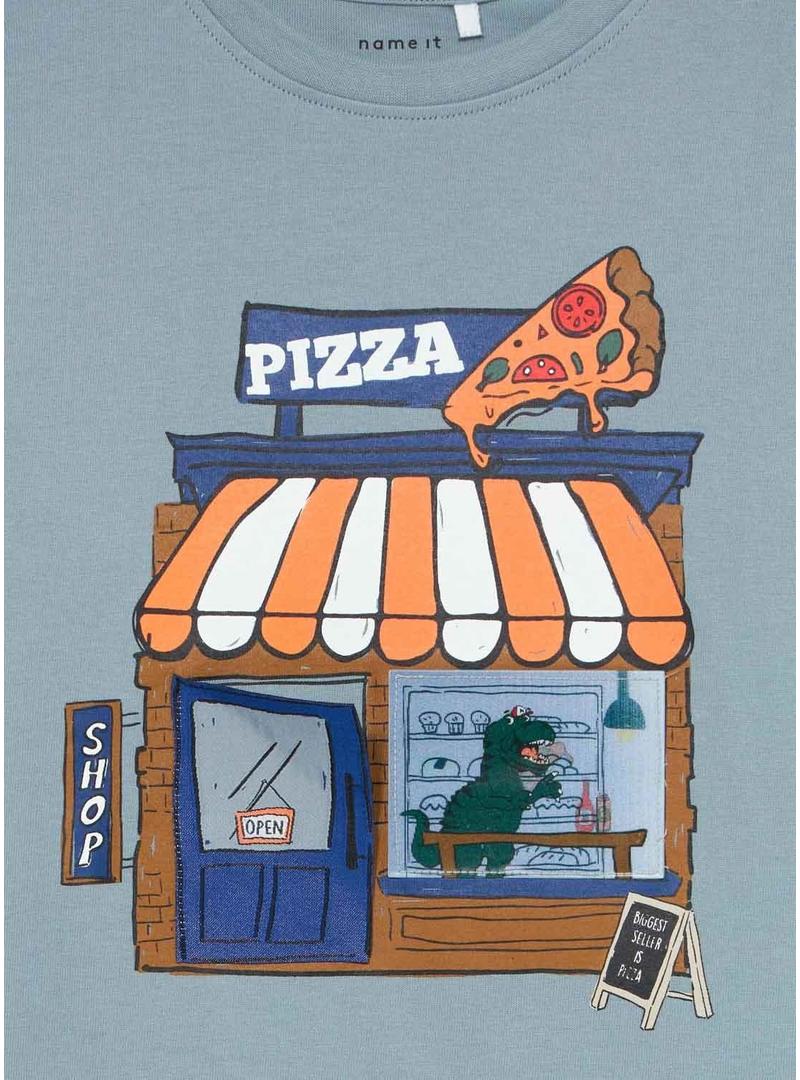 Camiseta Name It. Cor azul. Gola redonda. Manga comprida. Formato regular. Estampa divertida no peito.