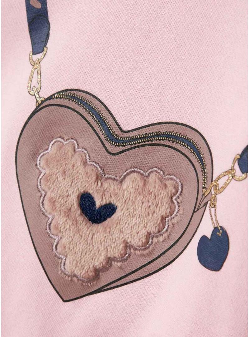 Moletom Name It. Cor-de-rosa. Manga comprida. Gola redonda. Acabamentos canelados. Corte regular. Bolsa com estampa de coração.