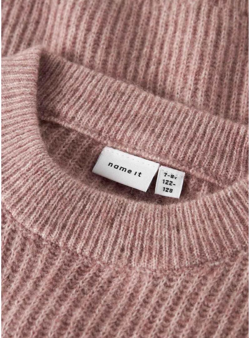 Camisa de malha Name It. Cor rosa. Tecido de malha canelada. Manga comprida. Ombros caídos. Comprimento curto. Formato boxy.