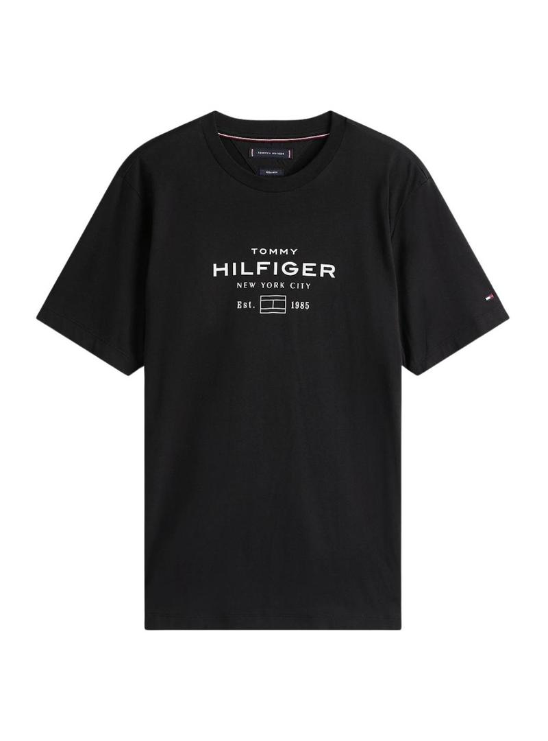 Camiseta Tommy Hilfiger Stack preta para homem.