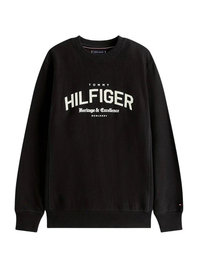 Moletom Tommy Hilfiger. Modelo Arch. Cor preta. Gola redonda. Extremidades caneladas. Logo bordado na extremidade da manga. Marca estampada no peito. Ajuste regular.