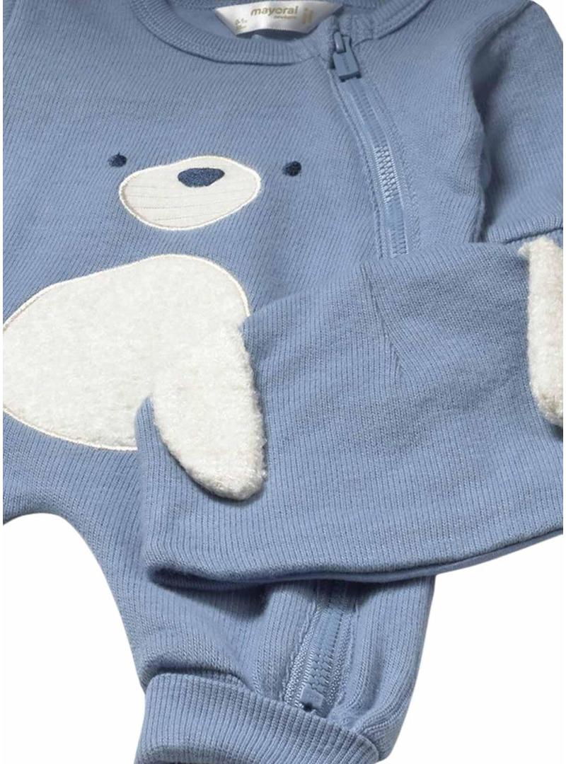 Macacão Mayoral urso com touca azul para bebê