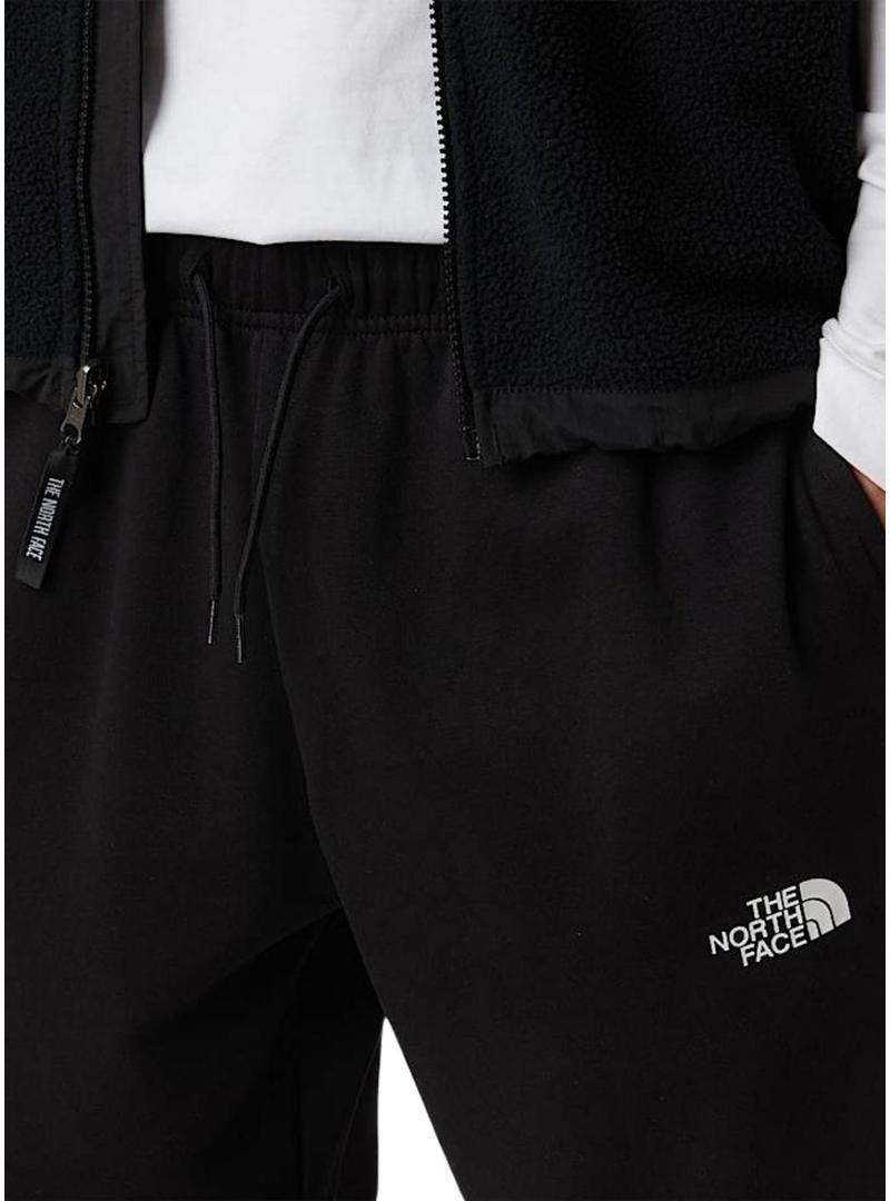 Calça The North Face. Modelo Jogger. Cor preta. Cintura elástica com cordão. Bolsos laterais. Barra elástica. Corte regular. Marca estampada no quadril e na panturrilha em branco.