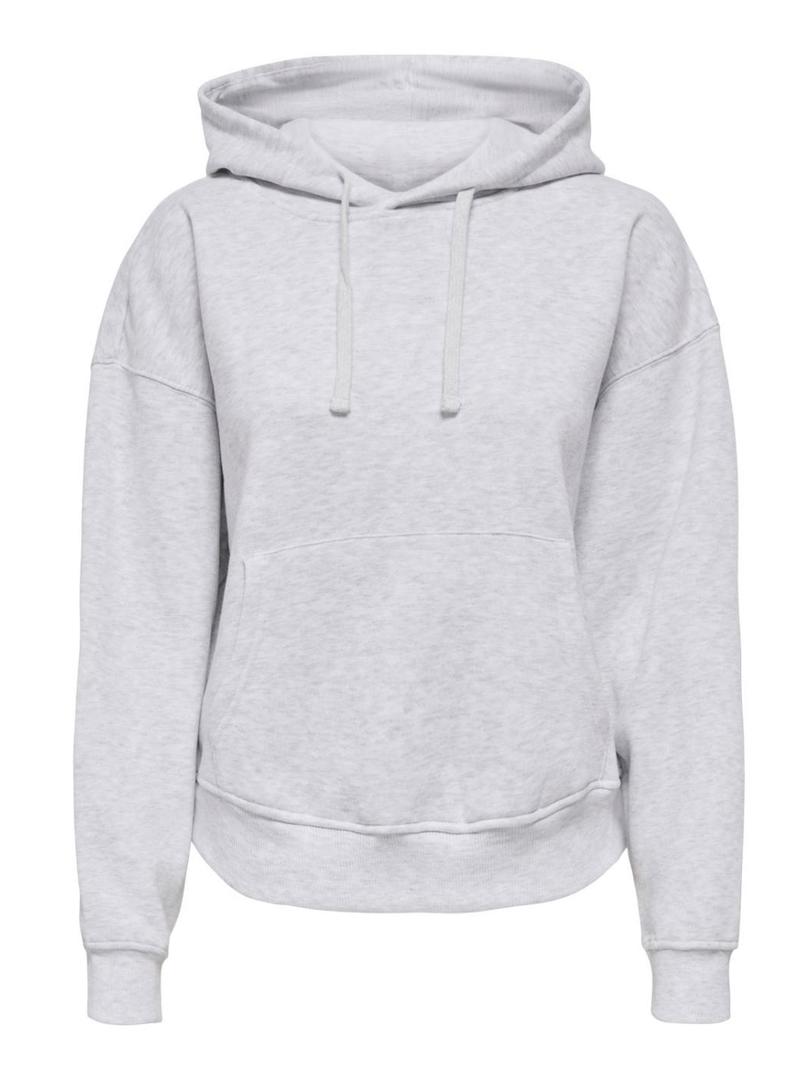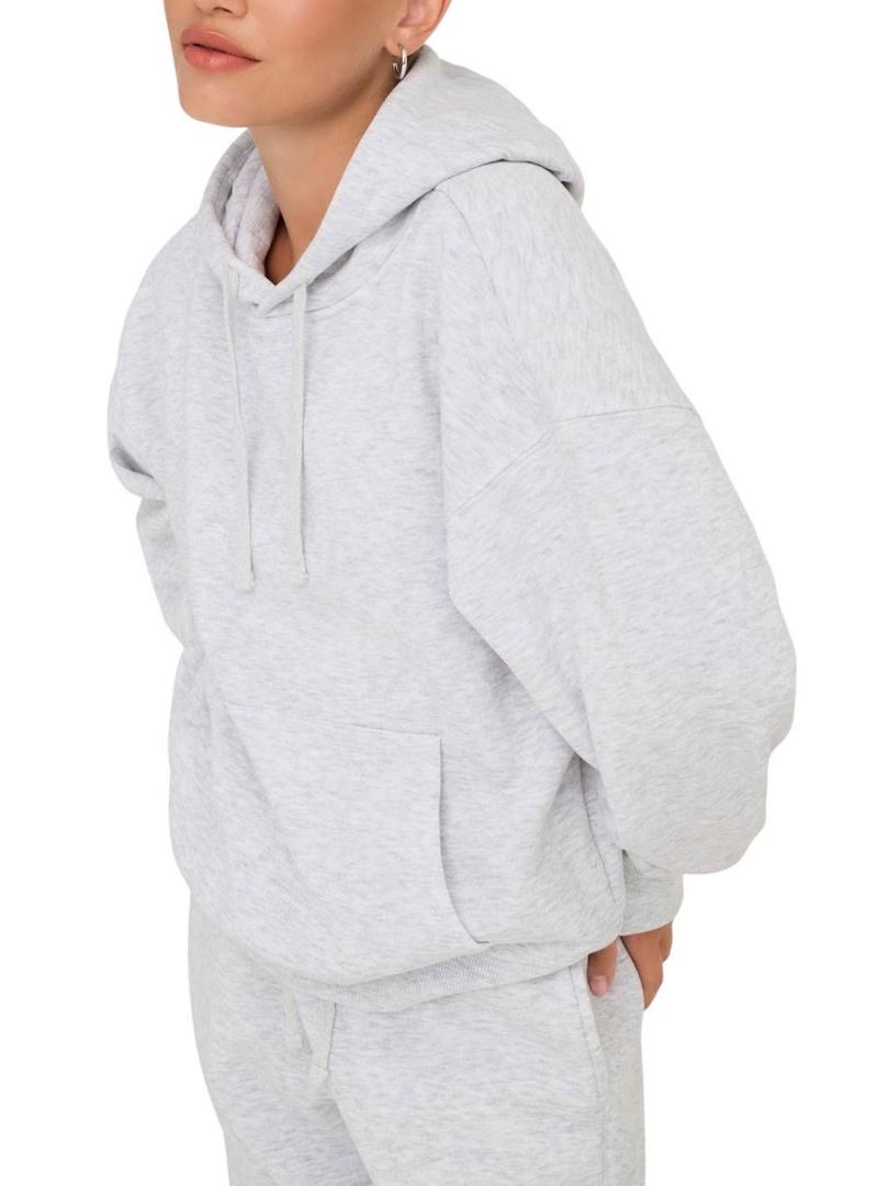 Moletom Only. Modelo Best. Cor cinza. Estilo básico. Tecido mesclado. Capuz com cordão ajustável. Bolso canguru. Extremidades elásticas. Ajuste folgado. Ombros caídos.