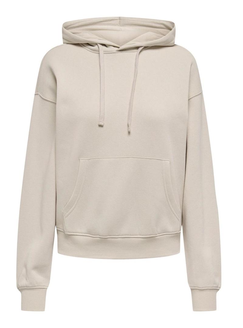 Moletom Only. Modelo Best. Cor bege. Estilo básico. Tecido mesclado. Capuz com cordão ajustável. Bolso canguru. Extremidades elásticas. Ajuste folgado. Ombros caídos.