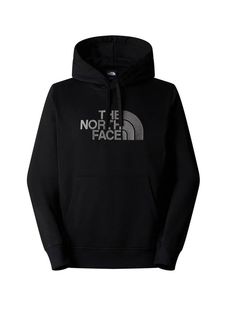 Moletom The North Face. Modelo Drew Peak. Cor preta. Capuz com cordão ajustável. Extremidades caneladas. Caimento regular. Bolso canguru. Marca bordada no peito com linha cinza. Logotipo nas costas.