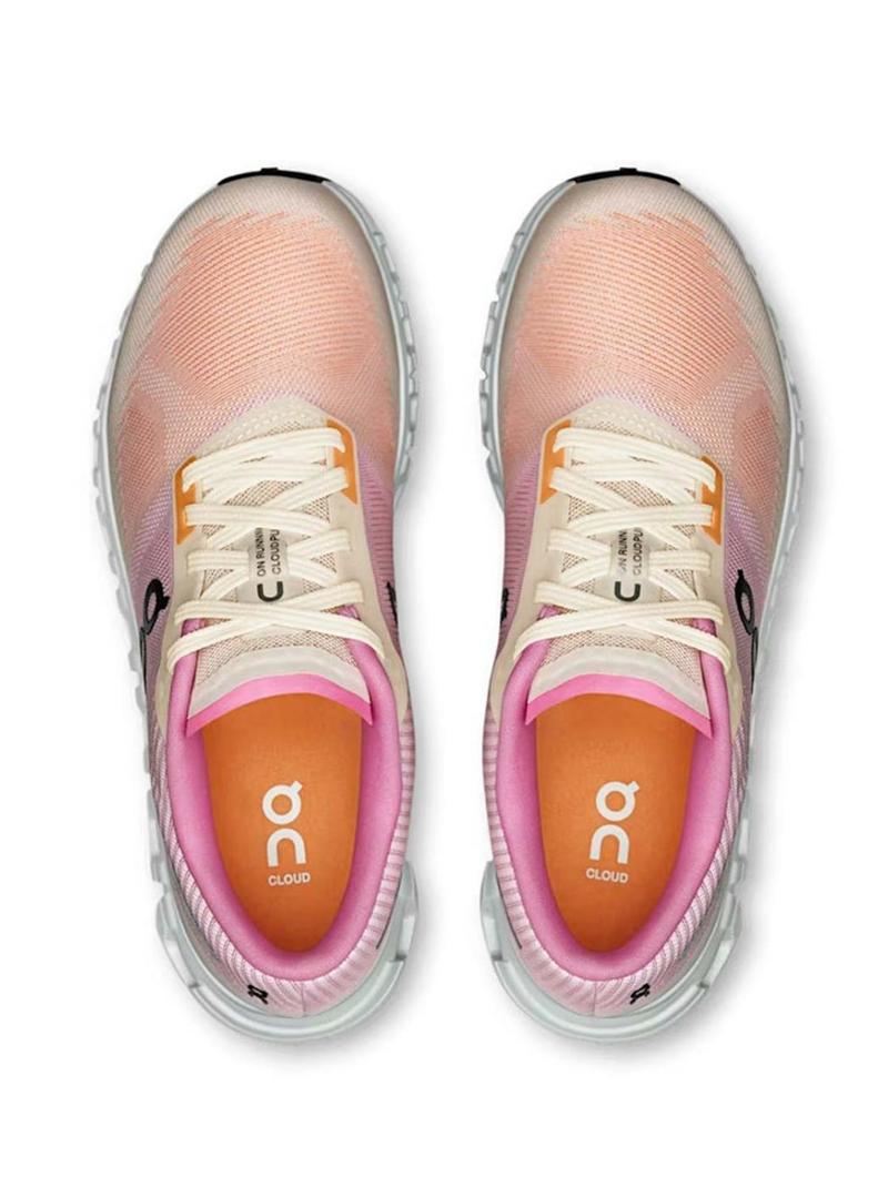 Tênis On Cloud 6 rosa e laranja para mulher.