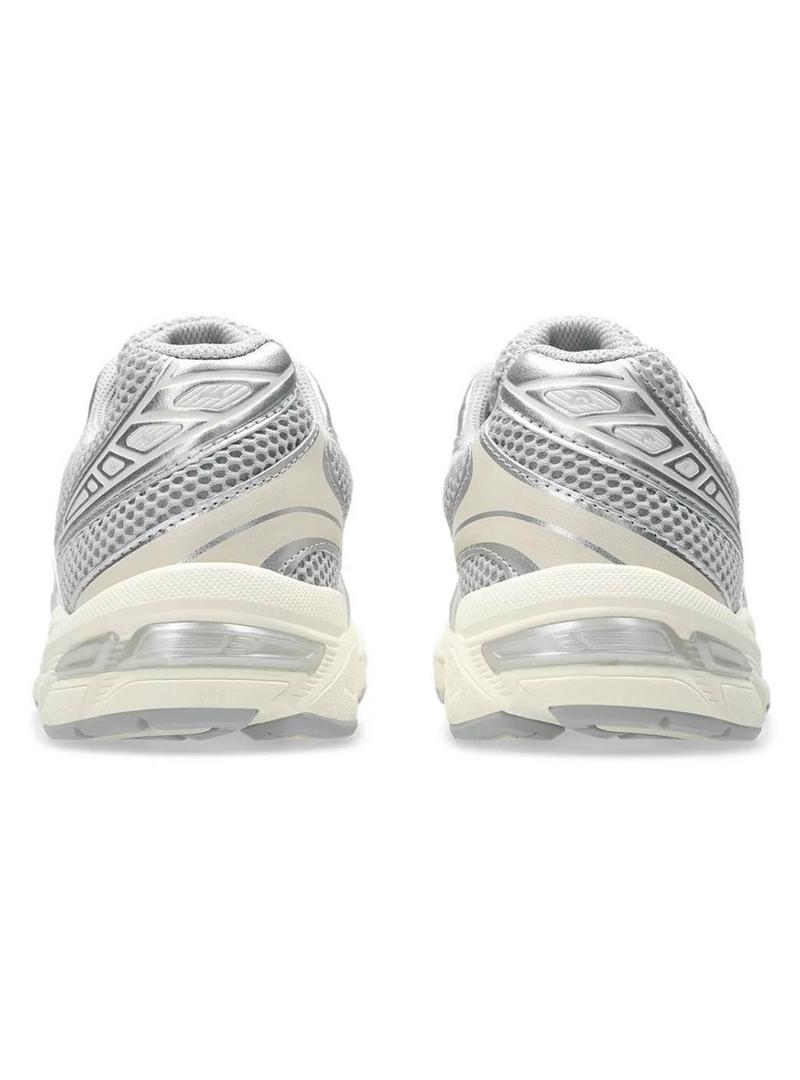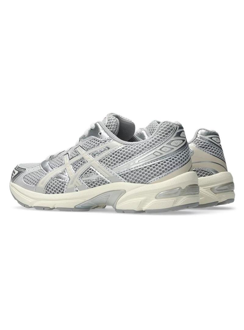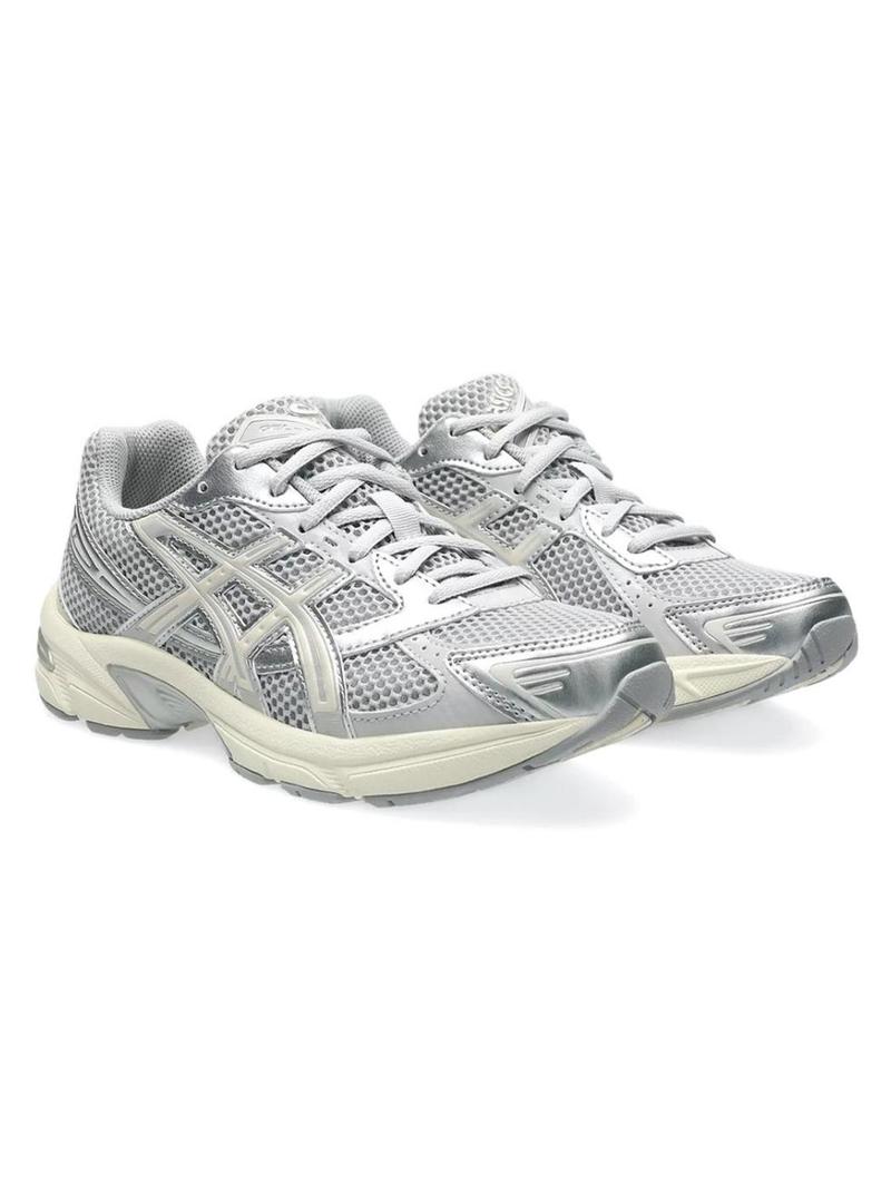 Sapatilhas Asics. Modelo Gel 1130. Cor cinza. Detalhes em cor bege. Parte superior em malha respirável. Estilo retro. Fecho com cordões. Sola de borracha antiderrapante.