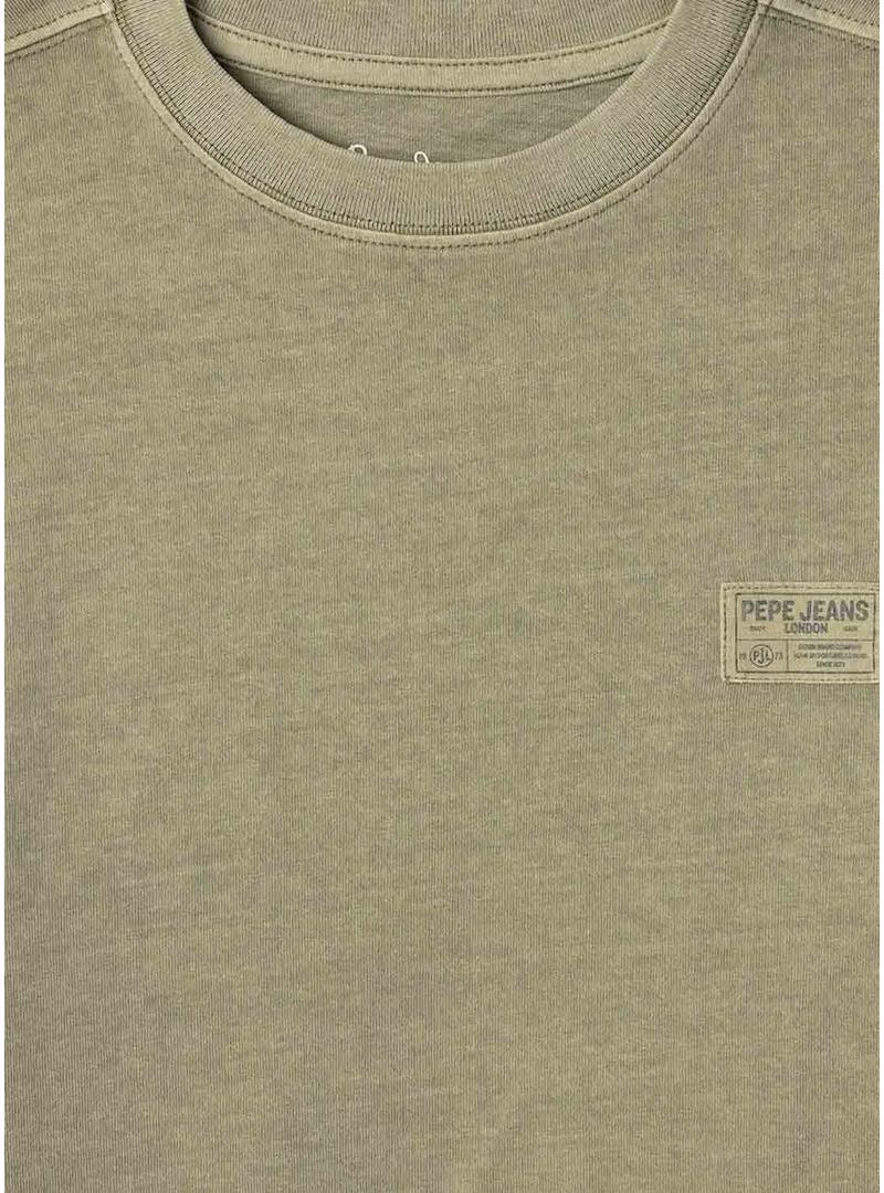 Camiseta Pepe Jeans. Cor verde. Manga comprida. Gola redonda. Ombros caídos. Corte relaxado. Efeito lavado. Etiqueta da marca no peito.