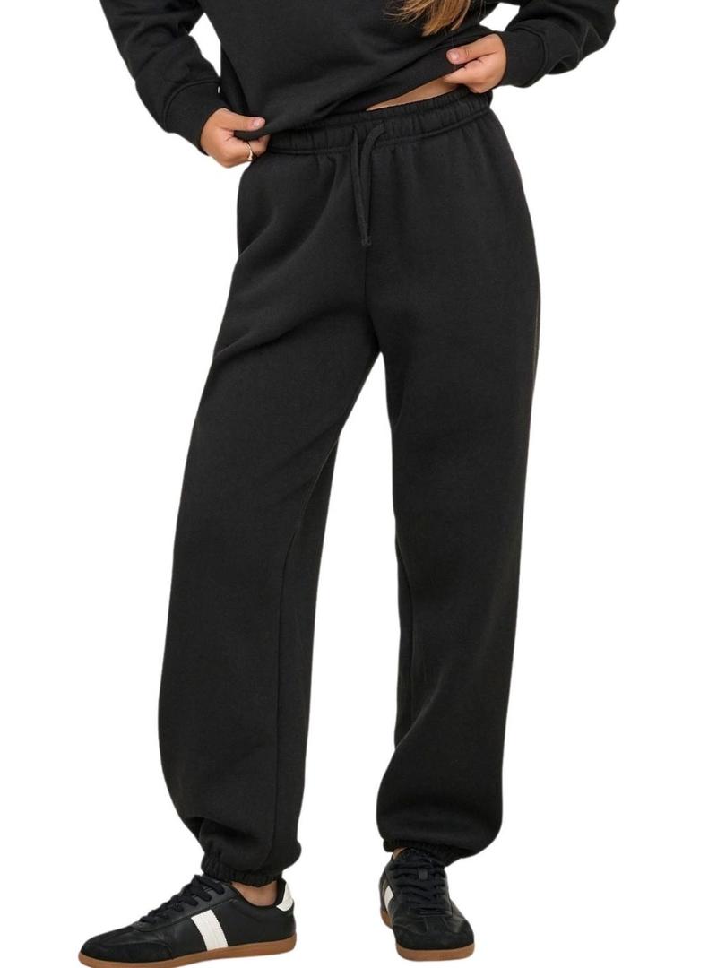 Calça Only. Modelo Best. Cor preta. Tecido liso aveludado. Estilo jogger. Cintura elástica. Bolsos laterais. Corte largo. Punhos elásticos na parte inferior.