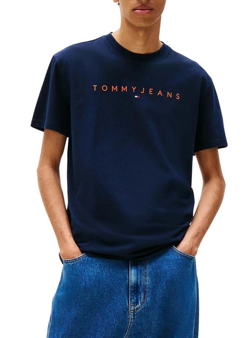 Camisa Tommy Jeans Linear Logo azul marino para homens.